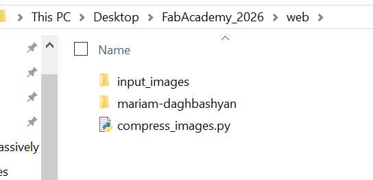 Before compressing the images, I stored all the required raw images in an input-images folder located at the same directory level as the project. Inside this folder, I created separate subfolders for each week, in order to maintain a clean and well-organized workflow.