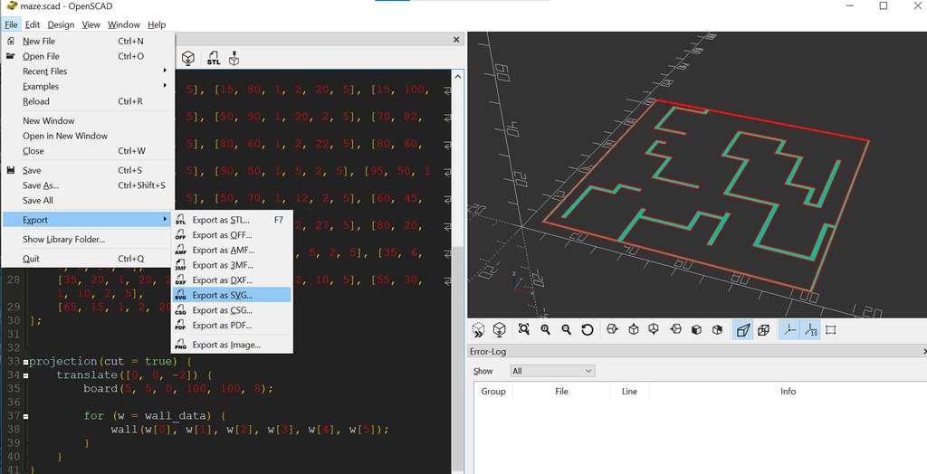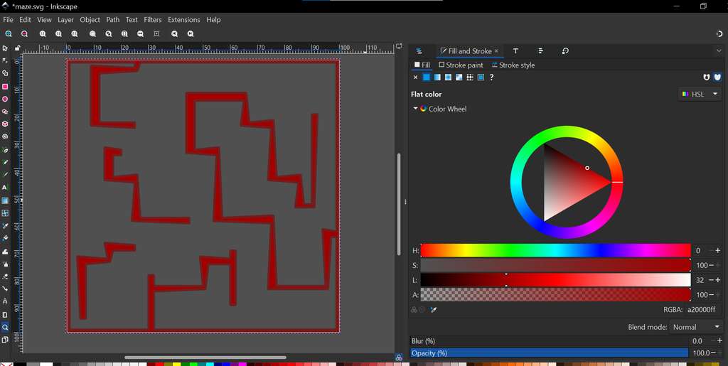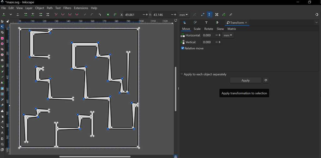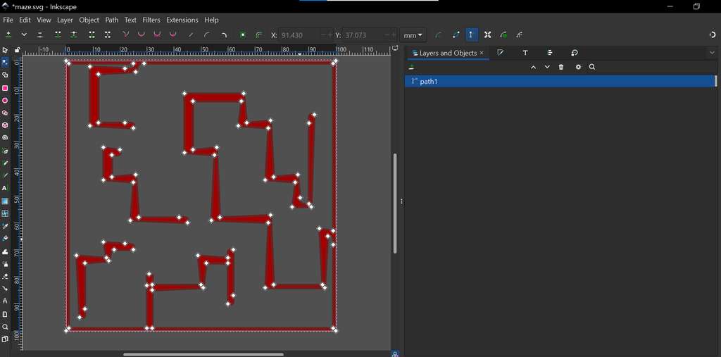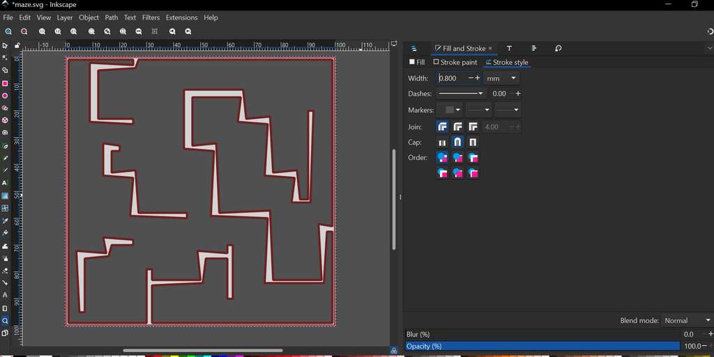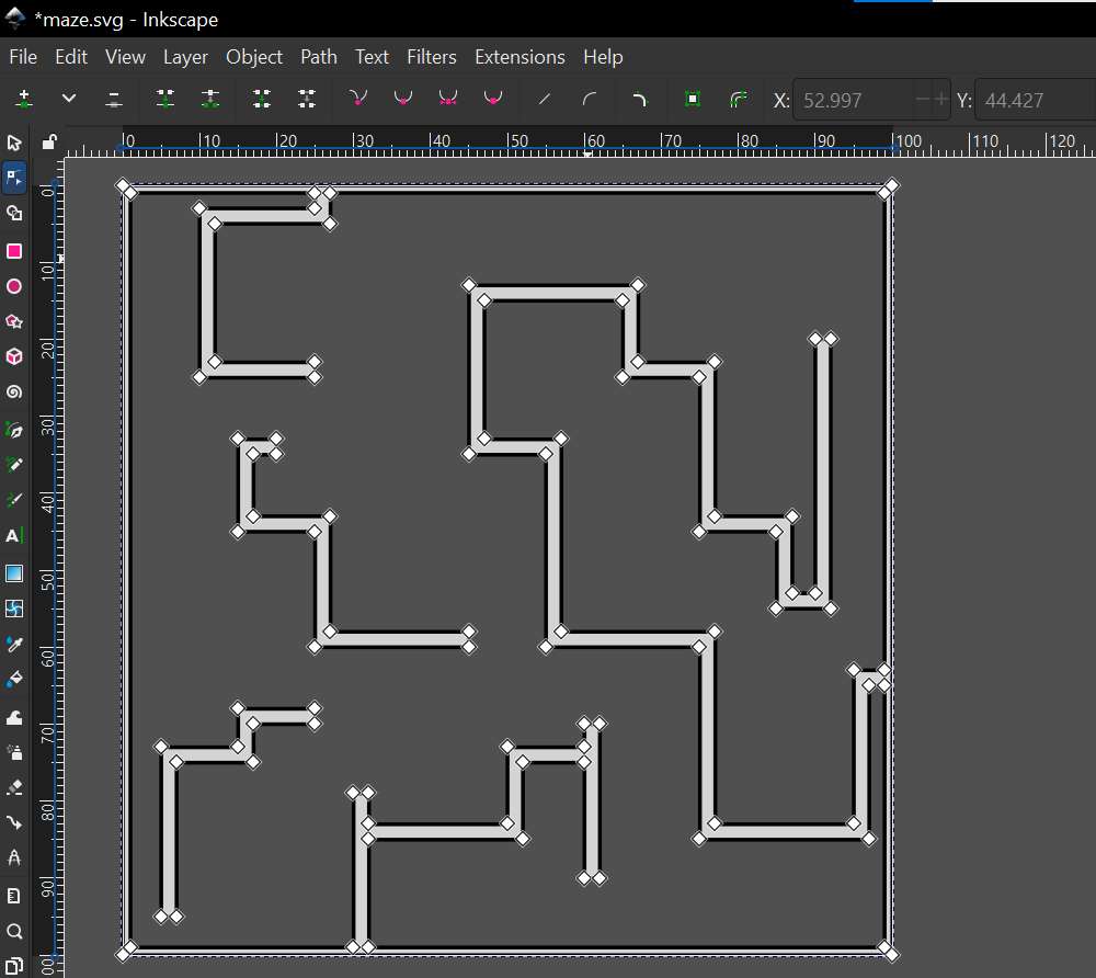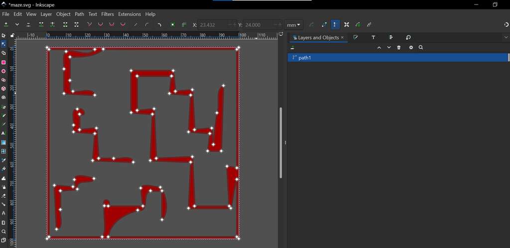 Since I already had the 2D .svg file of the game labyrinth board, I opened it in Inkscape by navigating to File → Open → select file.svg.