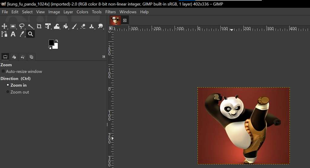 In the following images, it is shown how I upload the image and view it within the GIMP working area.