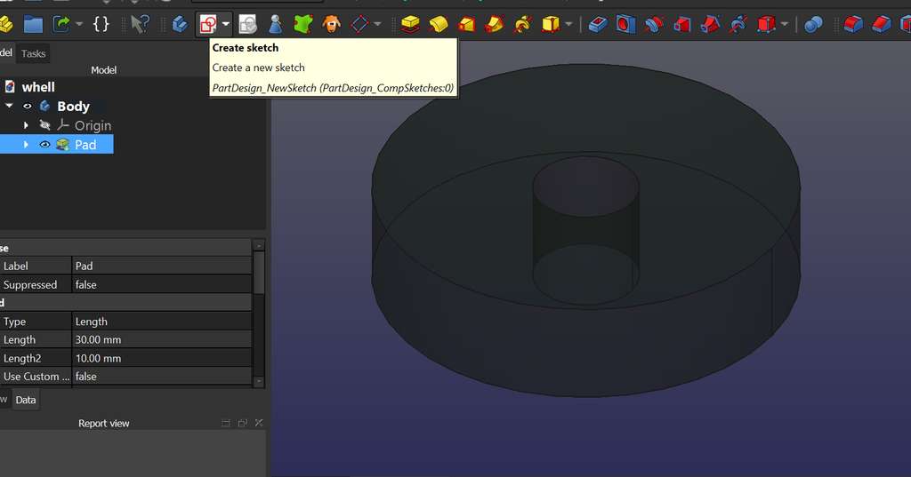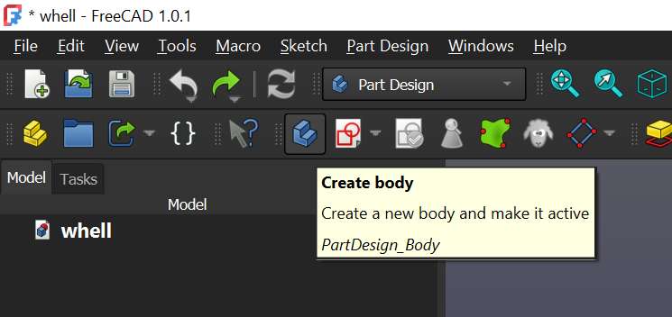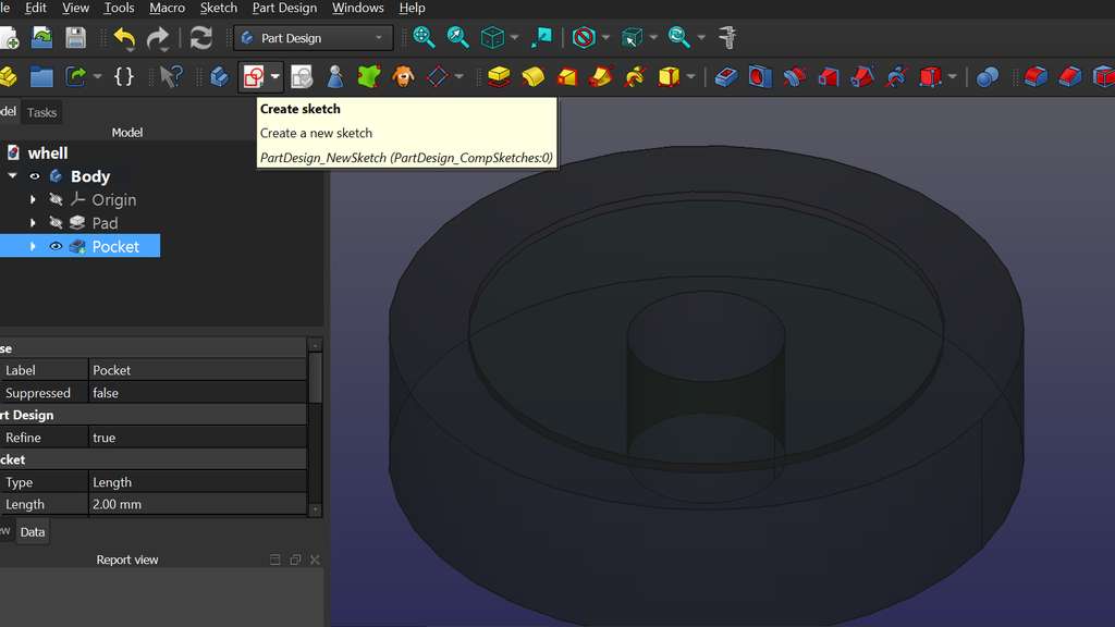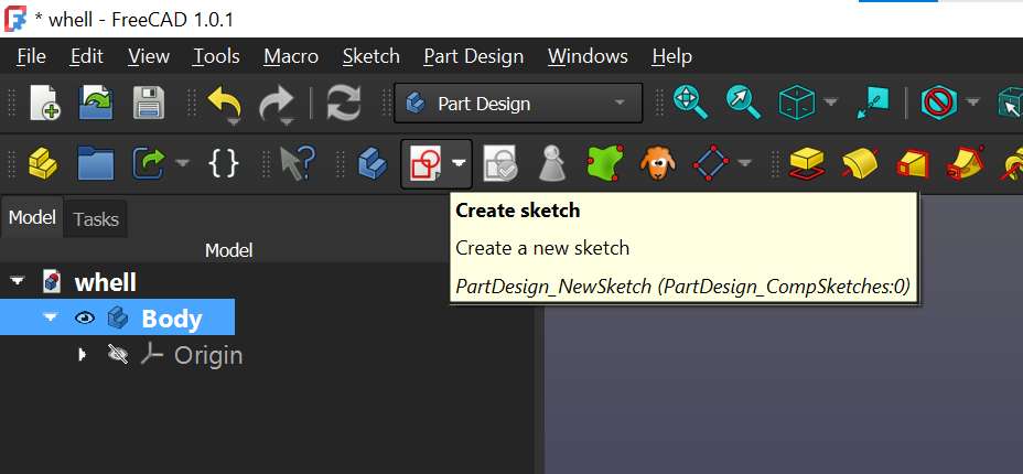 After downloading and installing FreeCAD, I created a new empty file. Inside it, I created a Body and a Sketch.