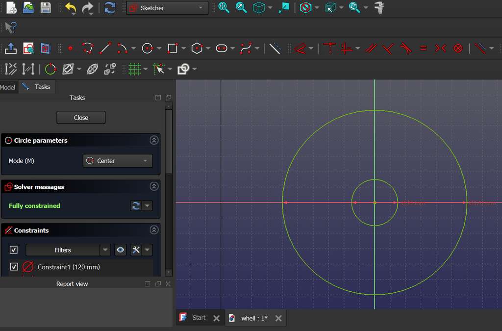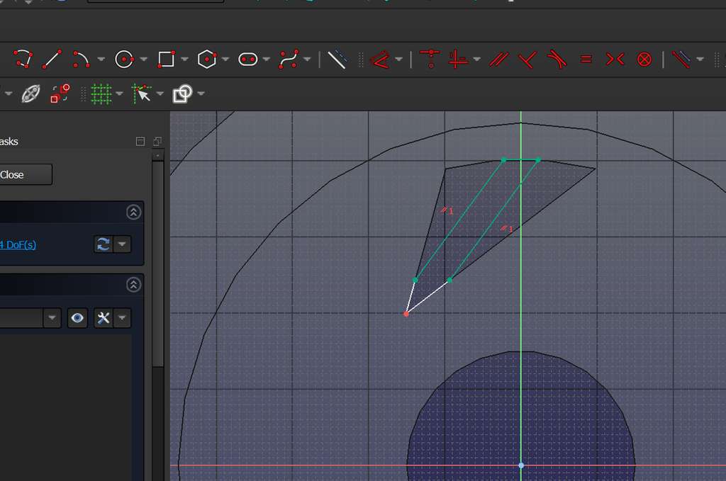 By applying constraints, I ensured that the triangle remained consistently positioned between the two circles, which is indicated by the sketch turning green.
