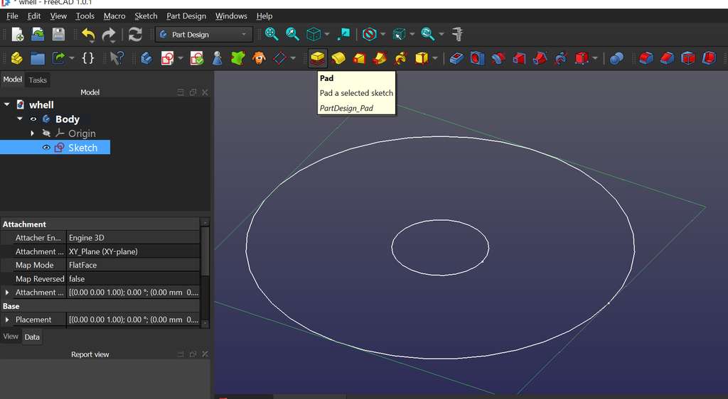 FreeCAD is a free, open-source, parametric 3D computer-aided design (CAD) software that allows ideas to be designed and, at least conceptually, realized. Using FreeCAD, I created a model of my robot’s wheel, which I plan to further improve later by making it fully parametric.