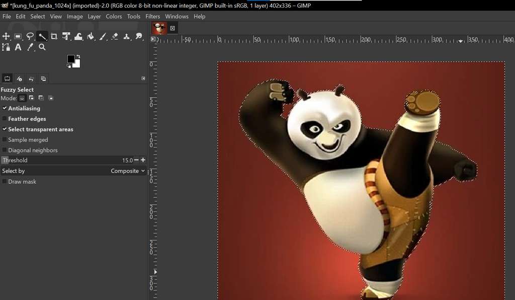 First, I need to remove the red background. Using the Magic Wand(W) tool, I select the entire background area and then press the Delete key to remove it. These steps can be seen in the images below.