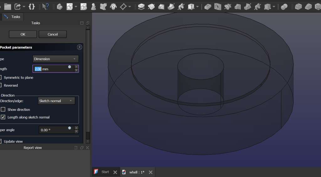 After defining the main circles, I used the Pocket tool to subtract the smaller circle from the larger one, forming the basic structure of the wheel.