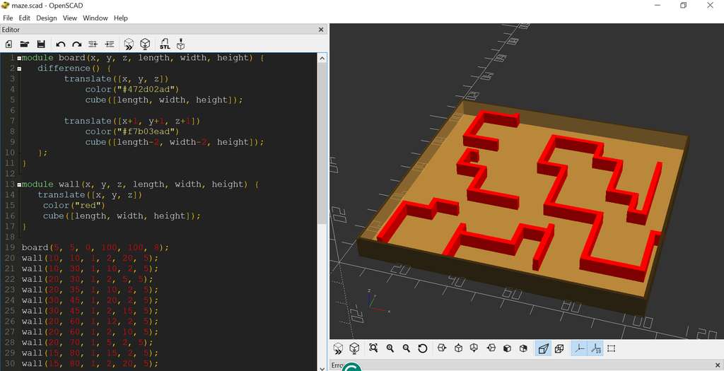 By calling the modules at the bottom of the file, the entire labyrinth is generated inside the board.