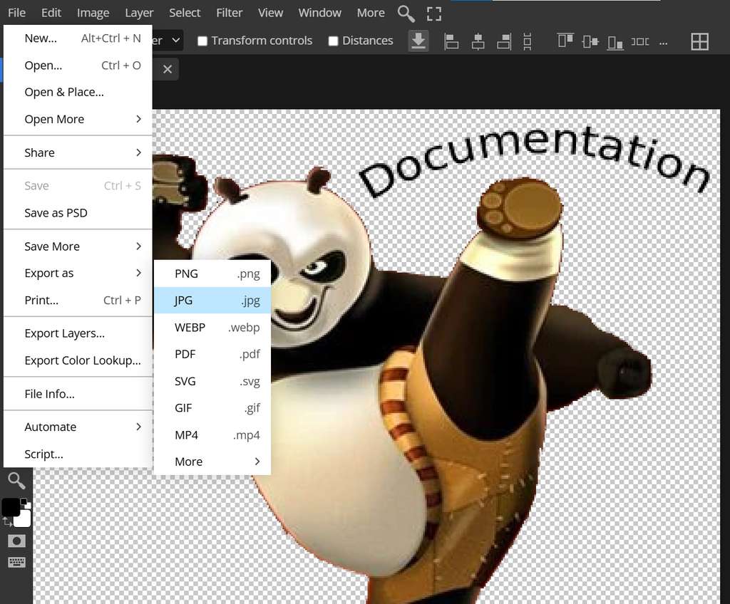 The image is now ready to be exported. To do this, I go to File → Export As and choose either .png or .jpg format. If the .jpg format is selected, the image transparency will be preserved. However, since my compress.py script converts all images to .png format regardless of the original file type, I saved the image directly as .png.
