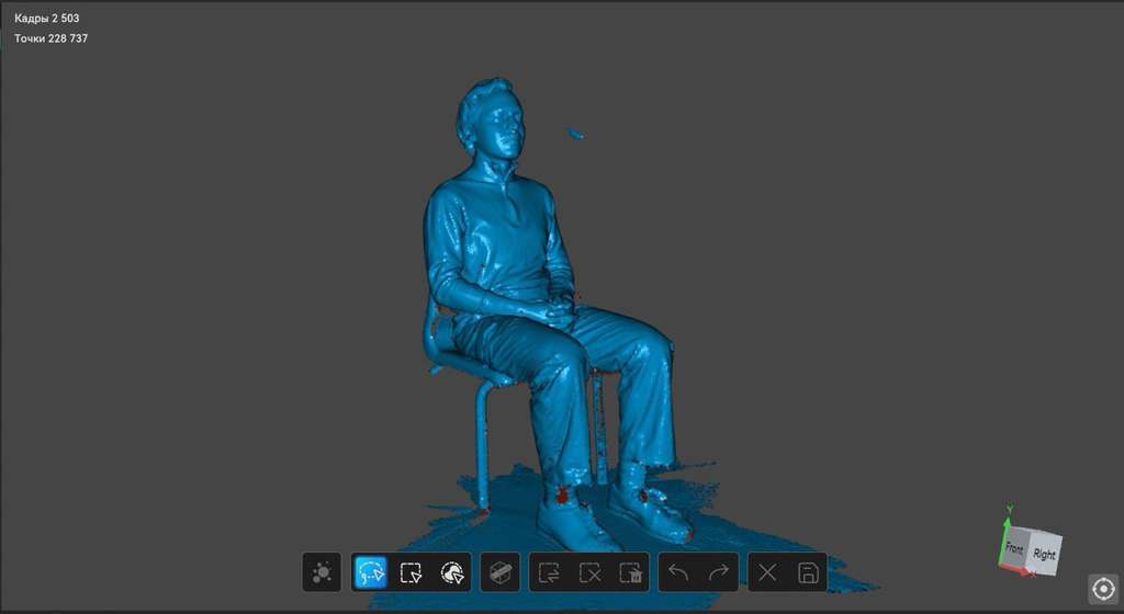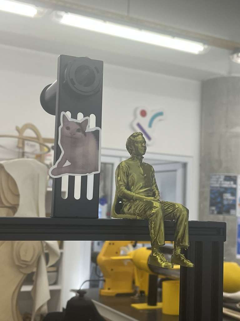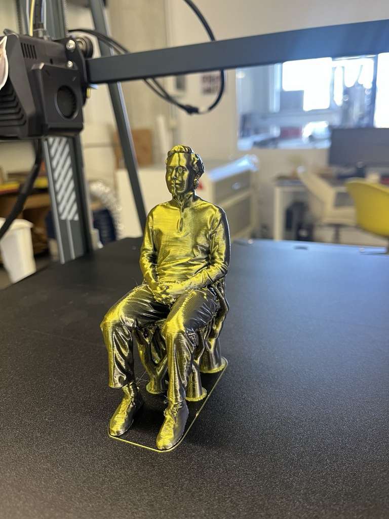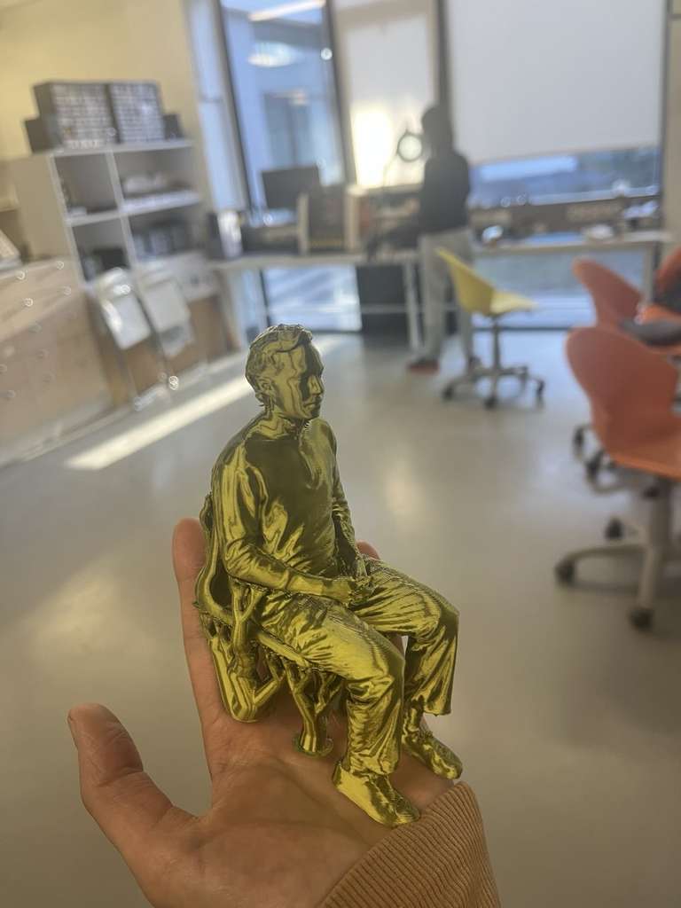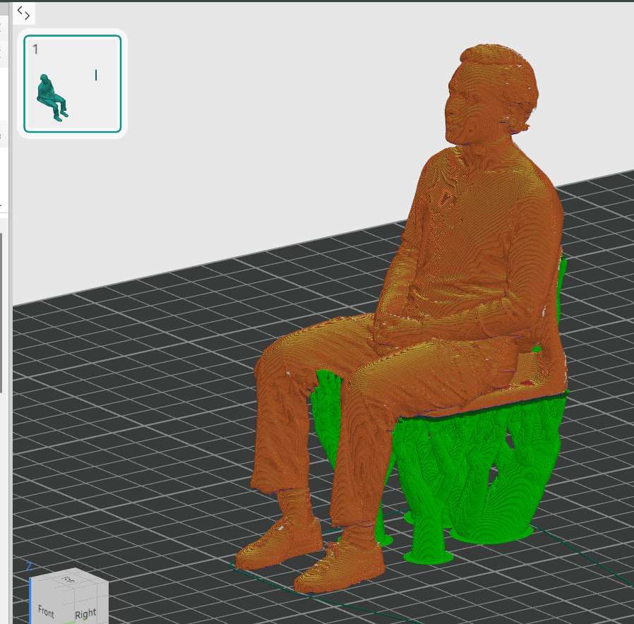 Since the chair was not properly captured during the scanning process, I removed the unnecessary parts. Instead of the original chair, I added support structures, which also created an interesting chair-like design. These supports can be removed later, allowing the model to be placed in any desired position 😊