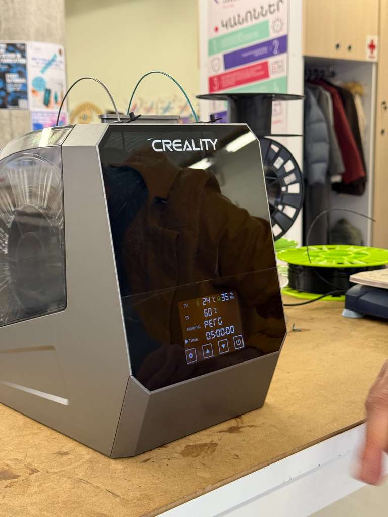 We were also introduced to a technique used to prepare filament before printing. This involves the Creality Filament Dryer Box, a device designed to remove moisture from 3D printing filament and maintain optimal conditions during storage and printing.