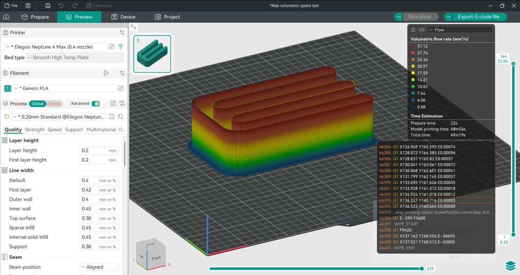 Test – Neptune 4 Max, Max Volumetric Speed Test, PLA, PETG
