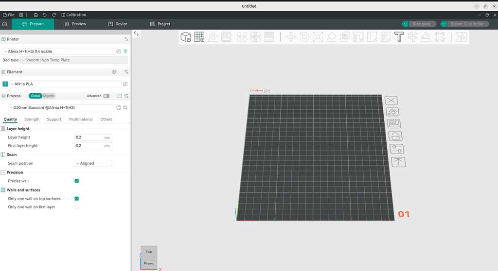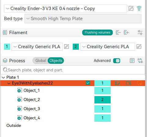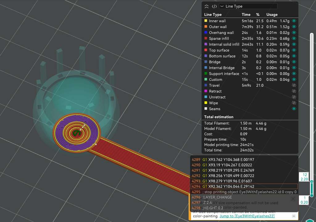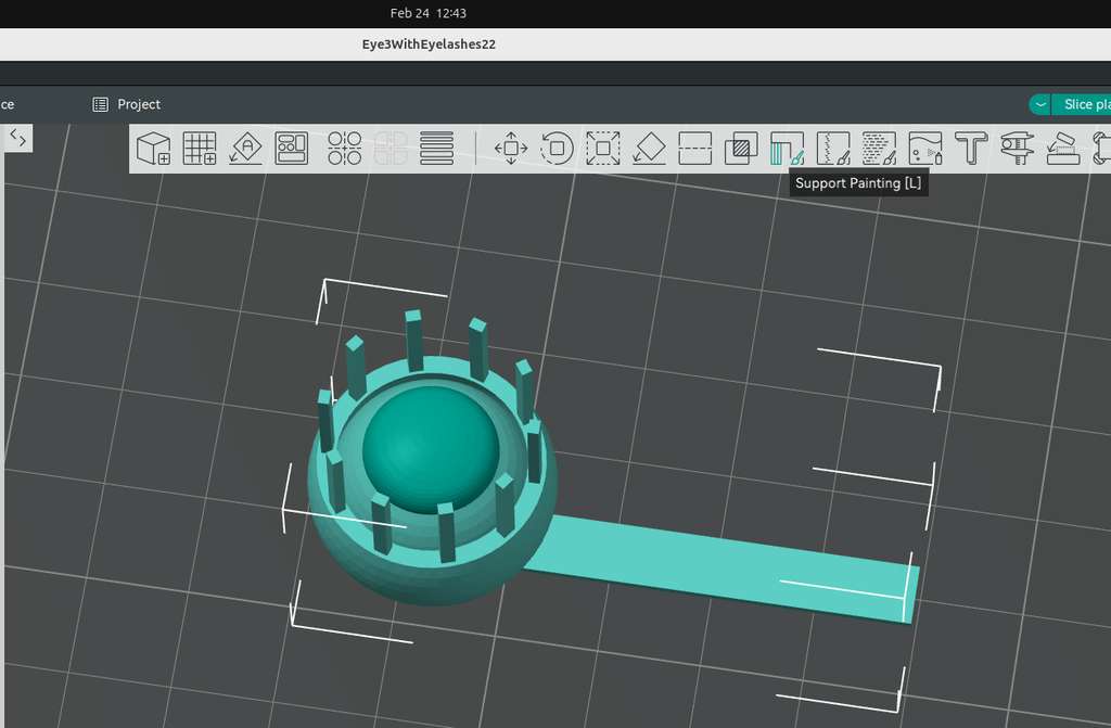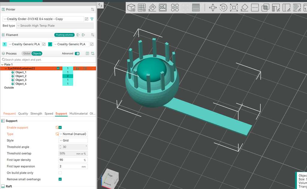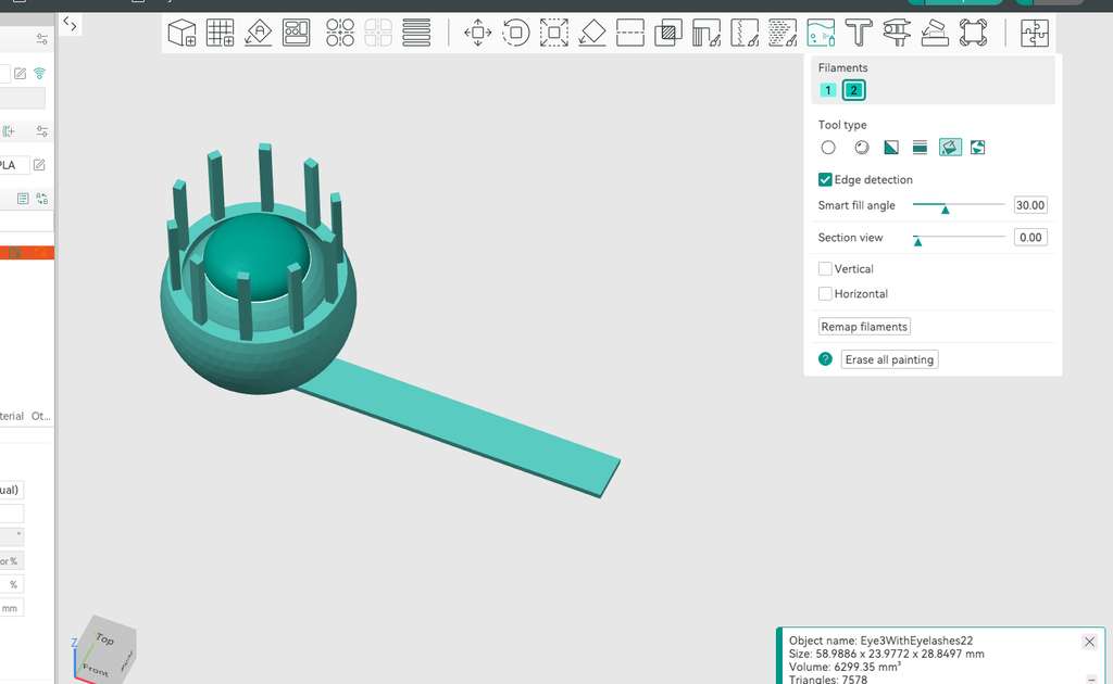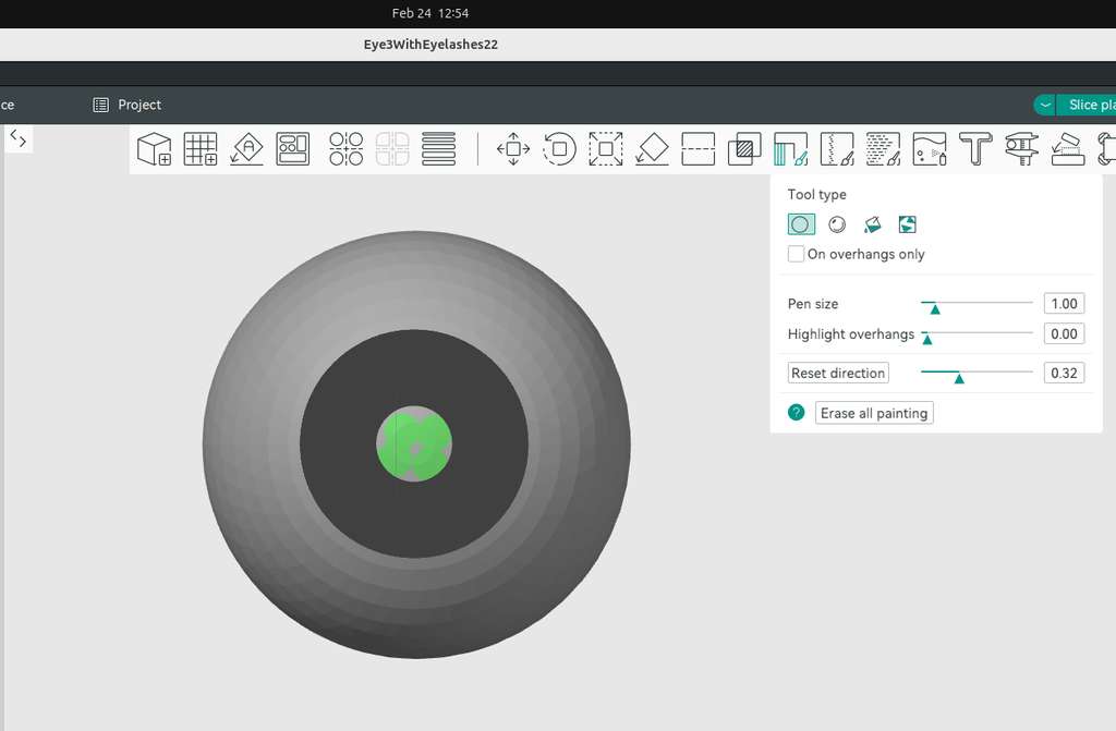First, I imported the eye model that I created in FreeCAD into the OrcaSlicer environment.