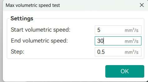 Next, I will present the results of the Max Flowrate test. This test is performed to determine the safe operating limits and to prevent the slicer from exceeding the printer’s physical capability to melt and extrude filament.