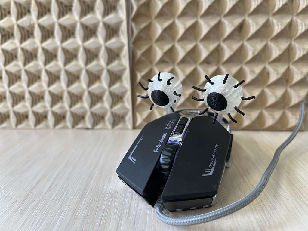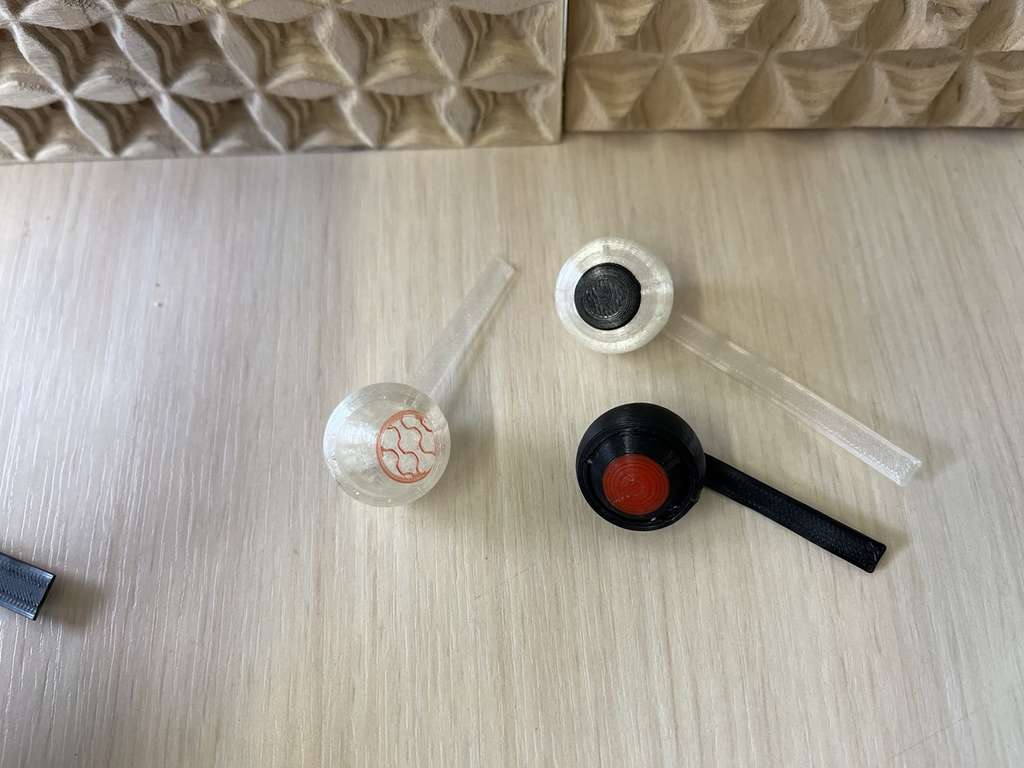 In addition, I decided to print the eyes for my final project car-robot. The goal was to design eyes that would move when attached to the vehicle and set in motion. In other words, I created a model where a small inner sphere can move freely inside a larger, partially enclosed sphere.