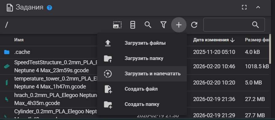 Now the model is ready for printing. We can start the process by selecting Print → Upload and Print.