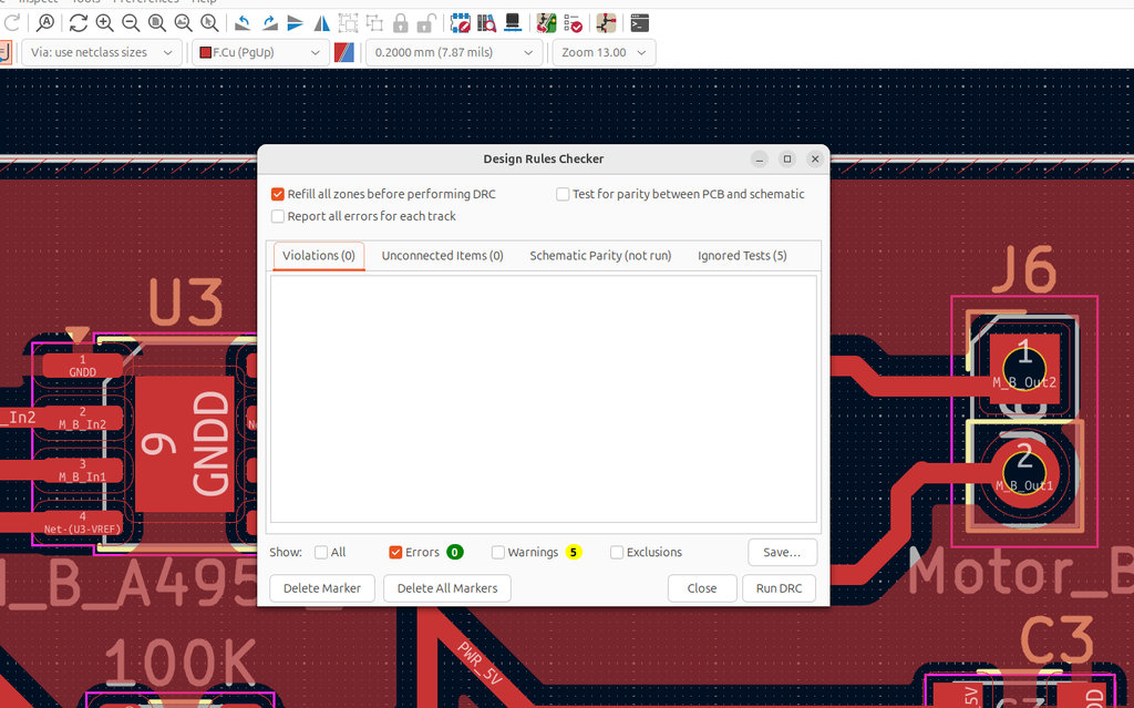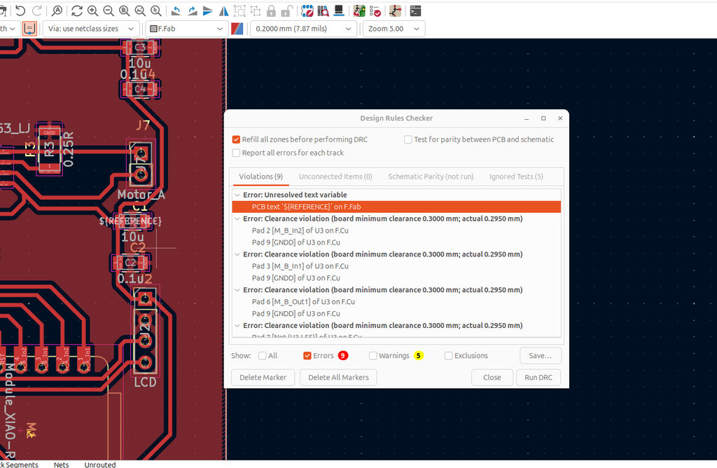 Here I can see that I have 10 errors. The warnings can be ignored because they are not critical issues and do not affect the PCB milling process.