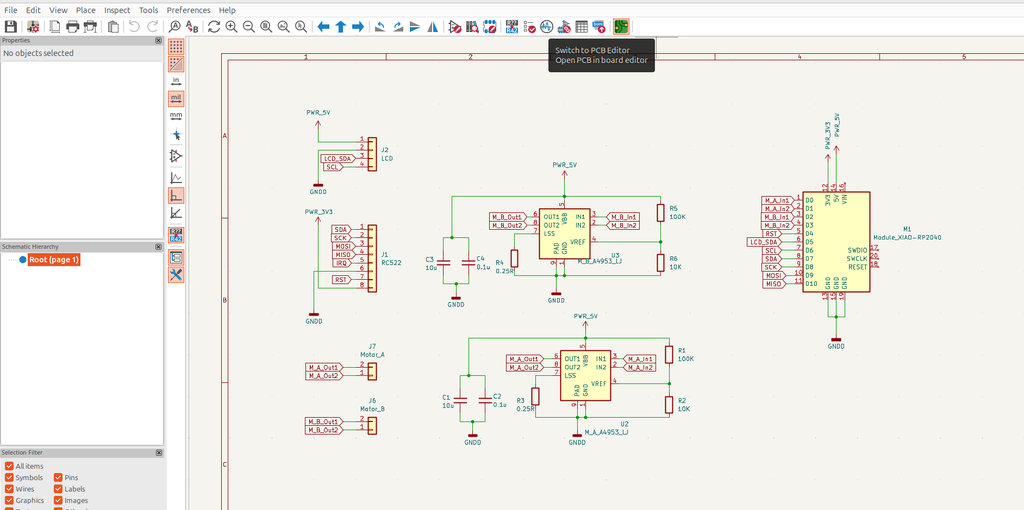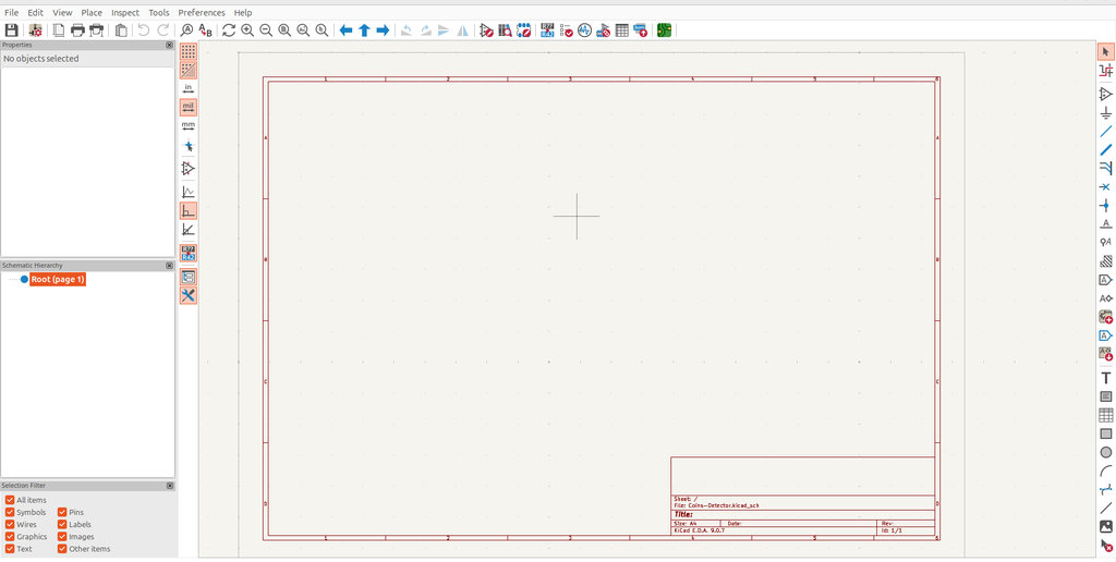 Then it is necessary to start working from the created kicad_sch file. It is important to understand which components are needed and add them in this workspace.