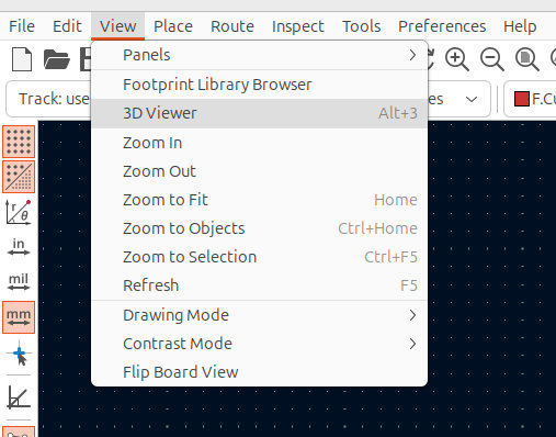 By clicking View 3D Viewer, we can see our PCB in a 3D view..