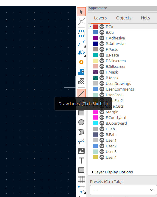 After switching to the PCB Editor, it is necessary to connect all the corresponding pins together. For that, I use the Draw Lines tool to connect all the required pins.