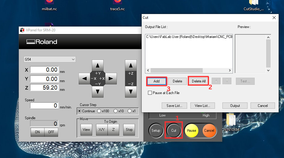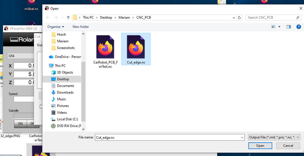 Then I pressed Cut, removed the previous file, and loaded the new .nc file for the edge cutting process.