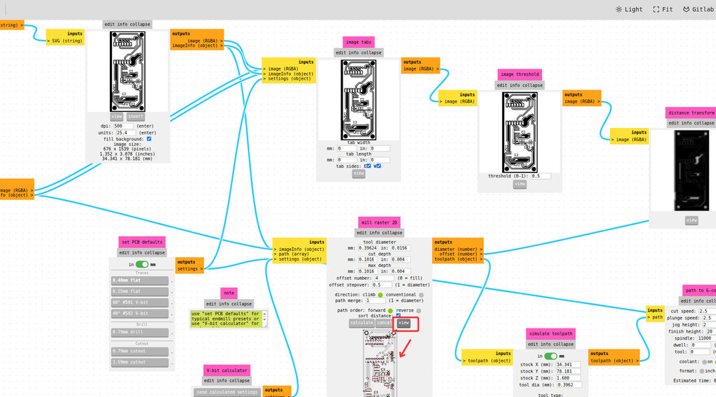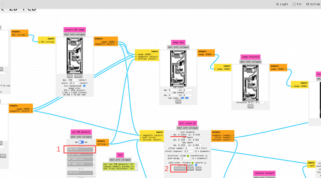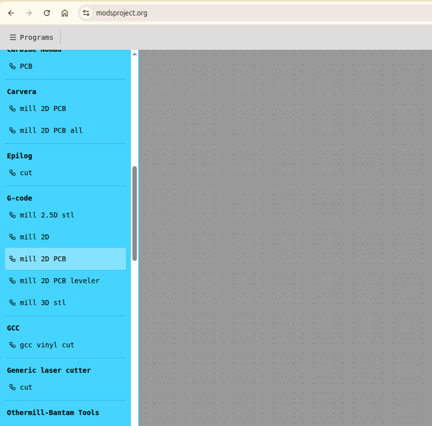 G-code. For this step, I went to modsproject.org and selected Mill 2D PCB from the G-code section.