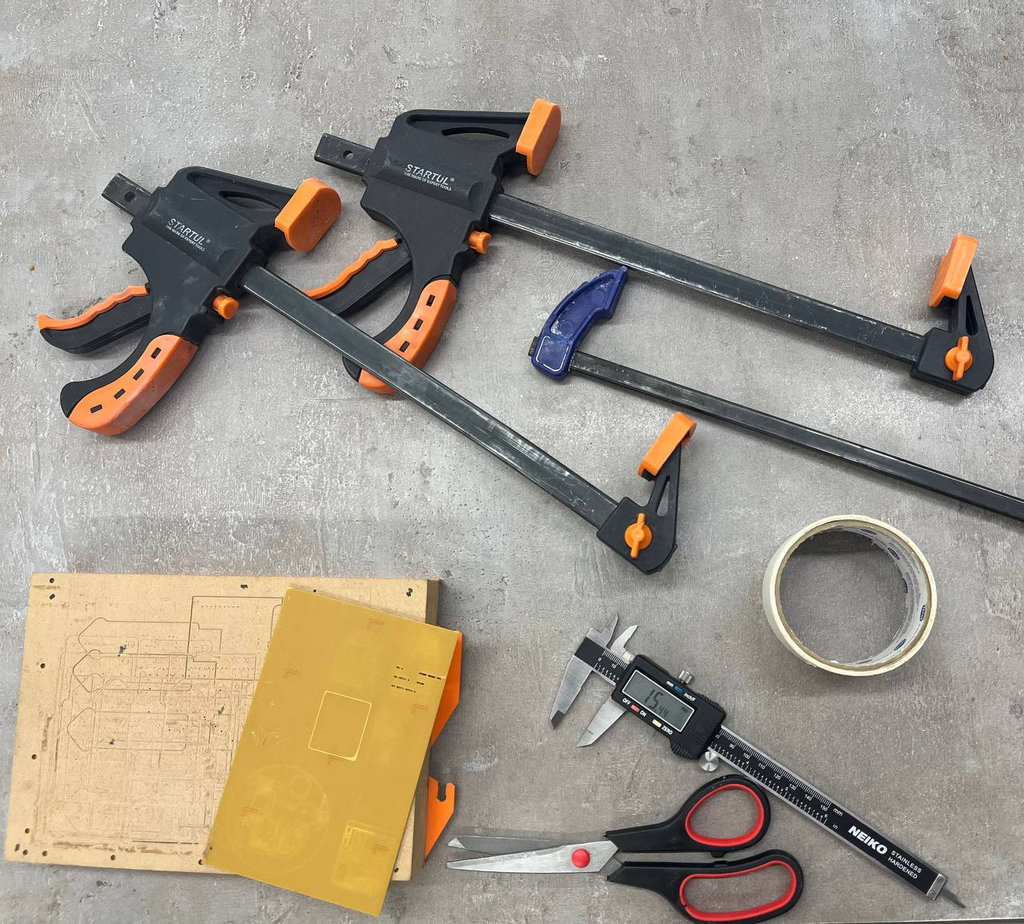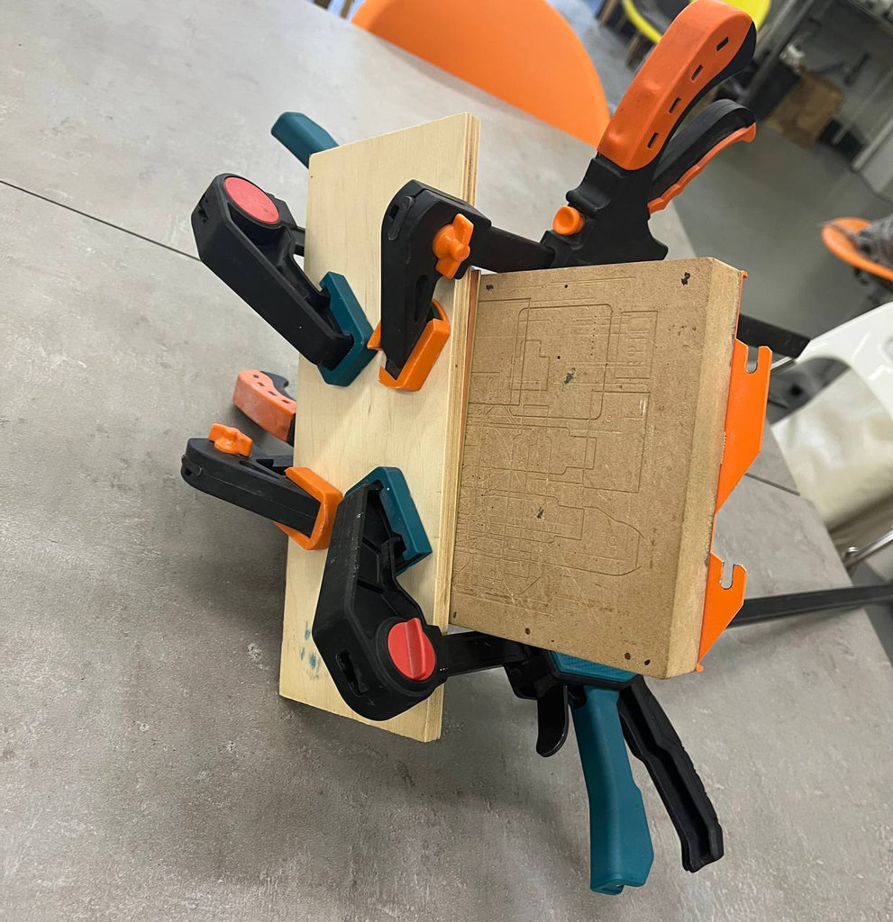 After that, I fixed the PCB Bed inside the CNC machine using special CNC clamps. The PCB was machined using VCarve software. I slowly moved the end mill to the starting position where the engraving should begin and set the zero positions for X, Y, and Z axes.