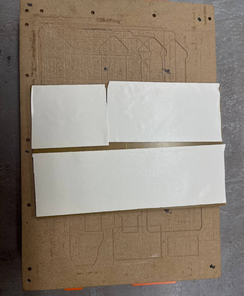 Next, the PCB piece had to be securely attached to the PCB Bed using double-sided tape, and I waited at least 5 minutes to ensure proper adhesion.