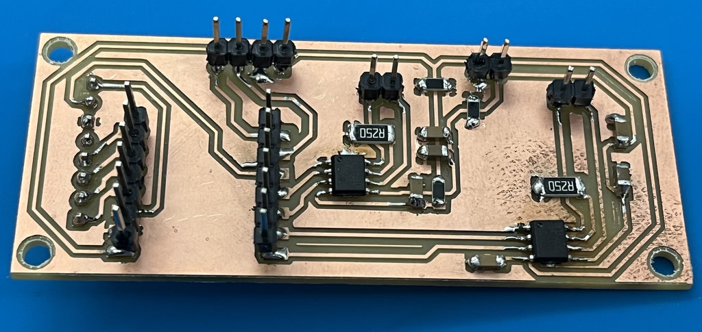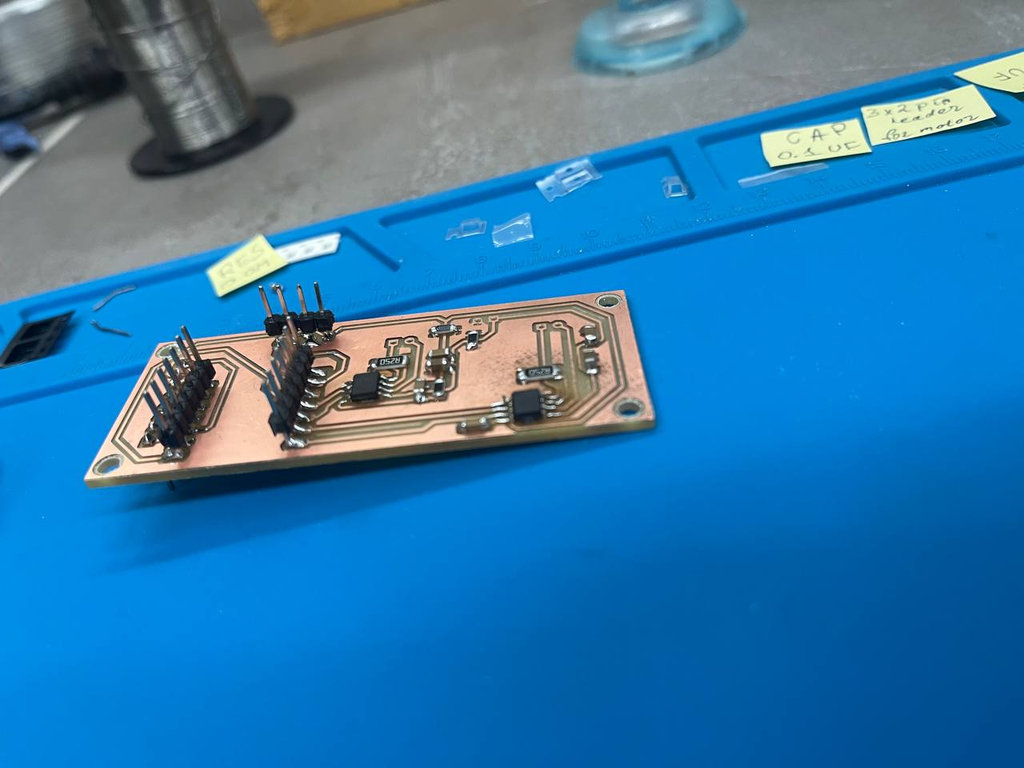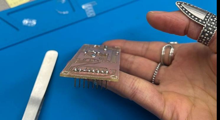 During Week 8, I learned how to manufacture and assemble a PCB, starting from milling and ending with soldering and testing. I worked with CNC PCB cutting, generated toolpaths, and understood how different milling bits affect the final result. I also practiced soldering components and testing connections using a multimeter, which helped me identify and fix issues like missing GND connections.