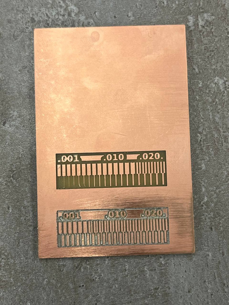 For the group assignment, we started experimenting with chemical etching to produce a PCB for the required test.