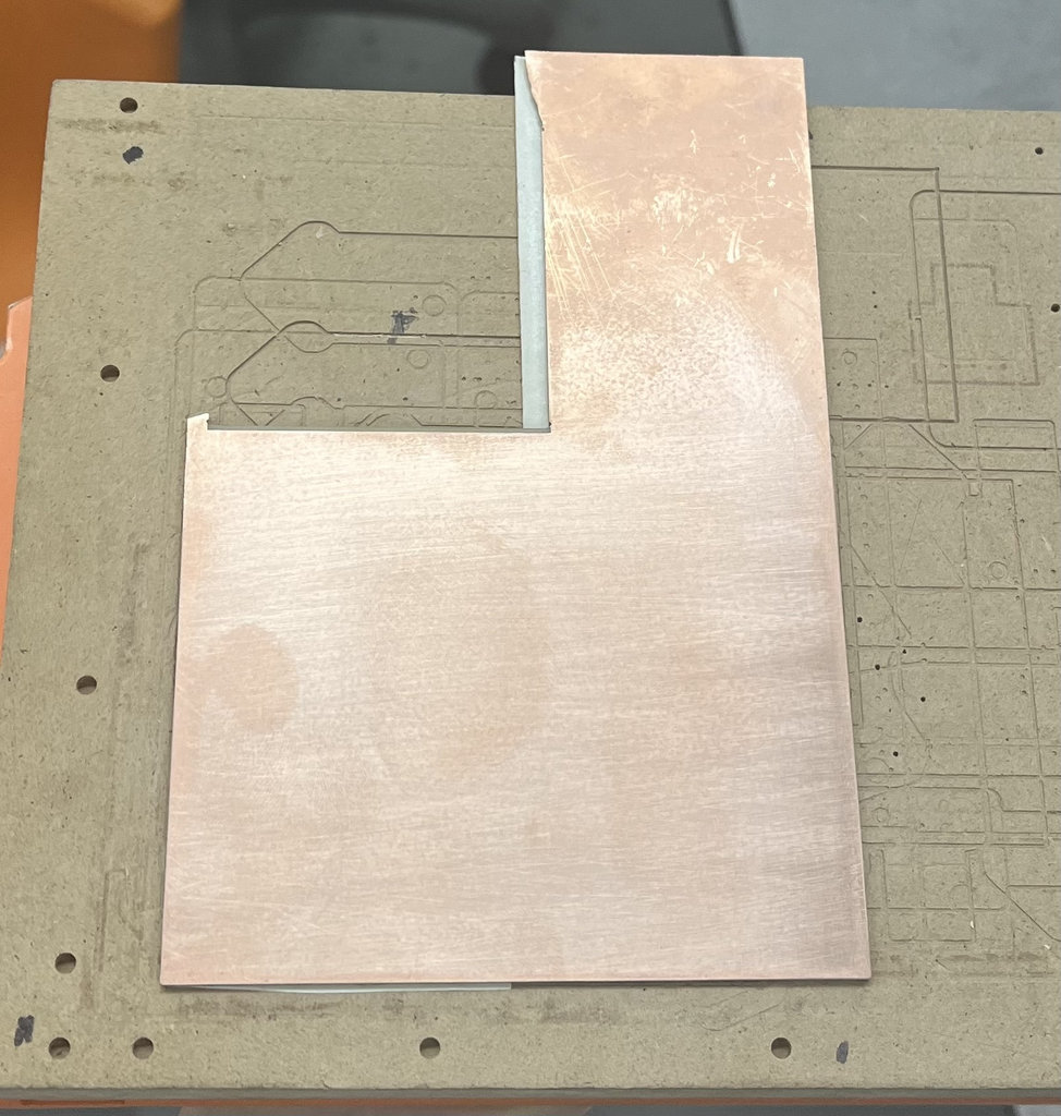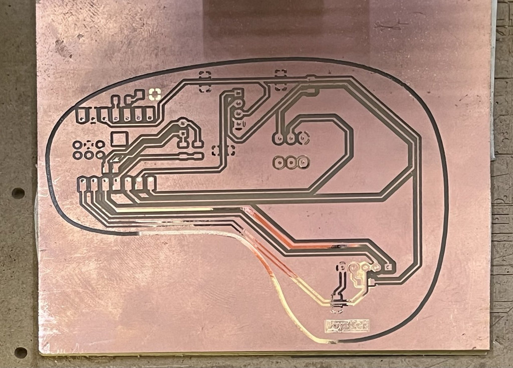 The first attempt failed. As seen in the image, some copper areas remained unengraved.