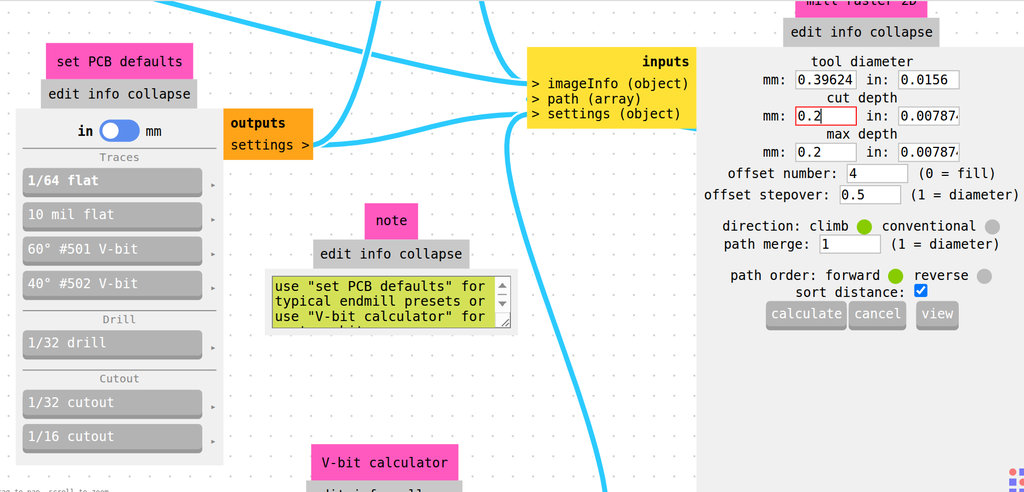After exporting the SVG files, I generated the G-code in mods, separately for: