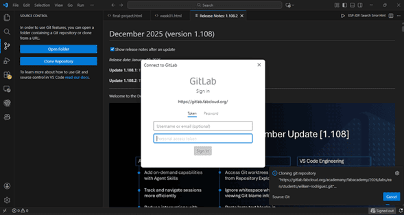 Version control was implemented using Git and GitLab as part of the Fab Academy workflow. The repository is hosted on GitLab, which is also used to deploy the personal website.