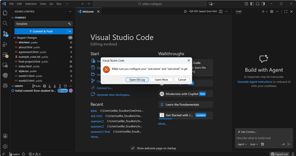 Visual Studio Code was used as the main development environment. This tool provides native integration with Git through its Source Control panel, allowing commits, staging, and push operations directly from the graphical interface without the need to use the Git terminal.