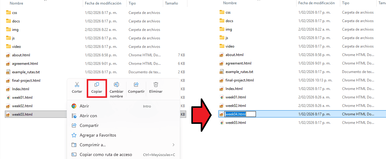 The following files are related to the development of this week, including the template used for the website and the reference guide provided for its implementation.