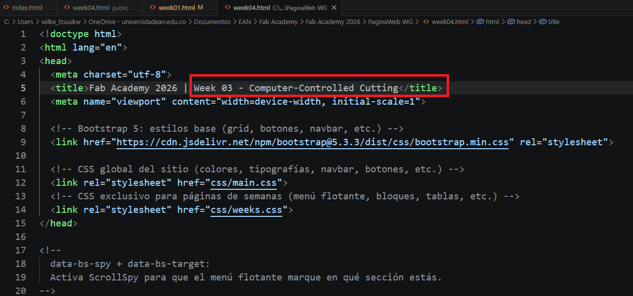 The website for this project was developed using a template provided by my local instructor, Jhonatan Cortes, from the Fab Academy node at Universidad EAN (Colombia). This template is designed to simplify the documentation process and focus on clearly presenting each stage of development.