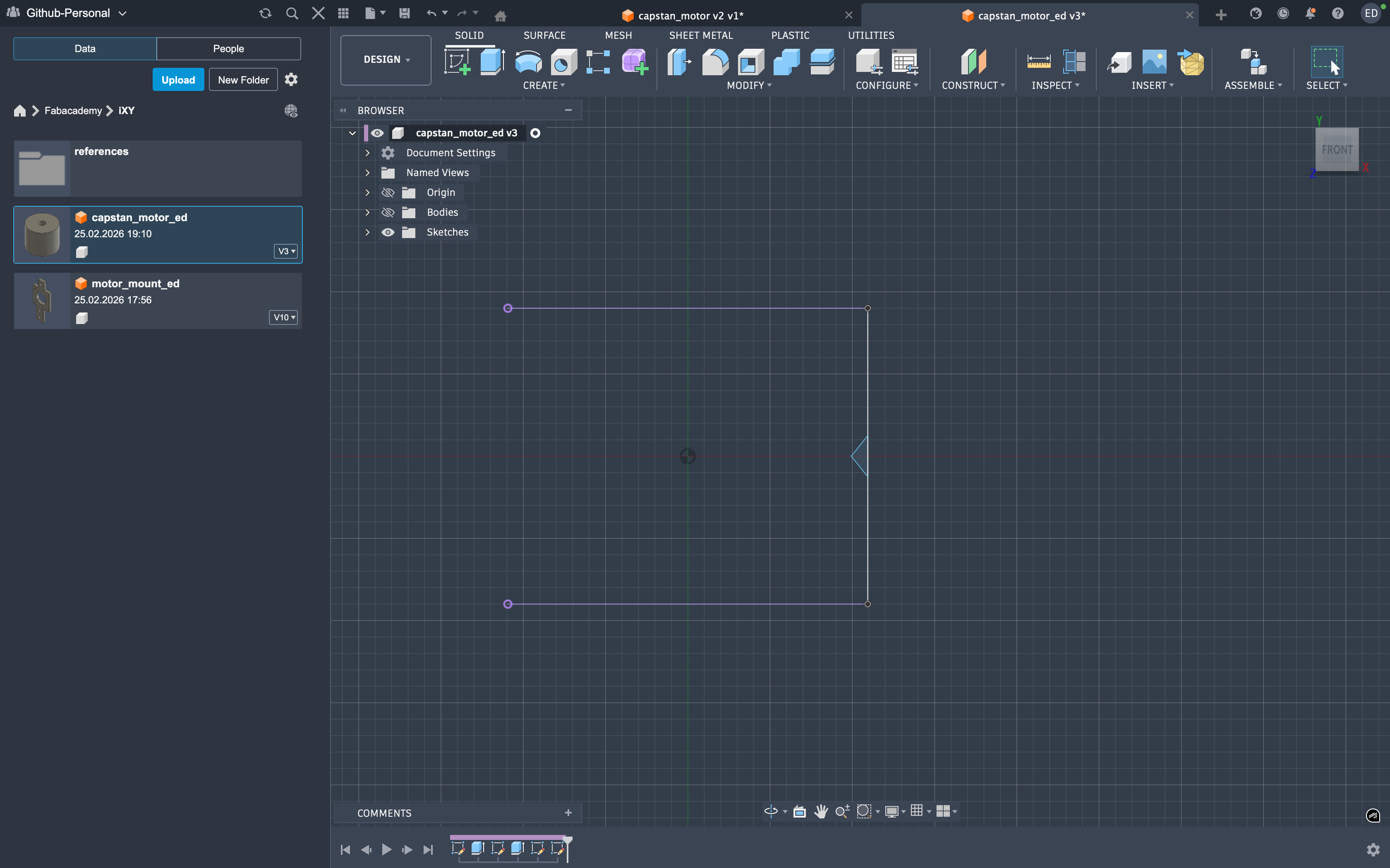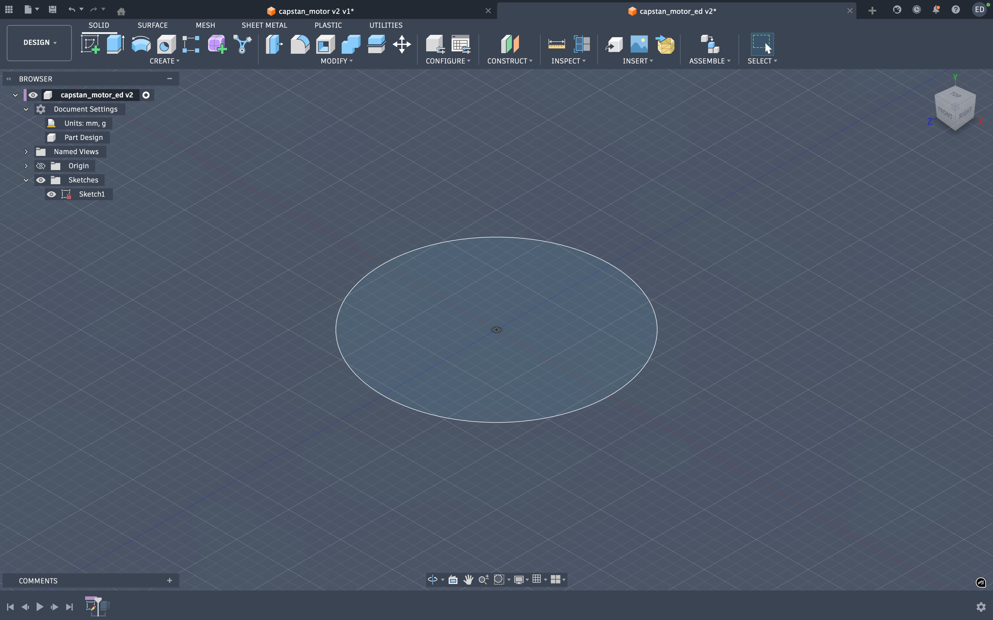 Then it was time for the revolute but before that I projected the two circular faces on the xy to properly setup the revoluting body