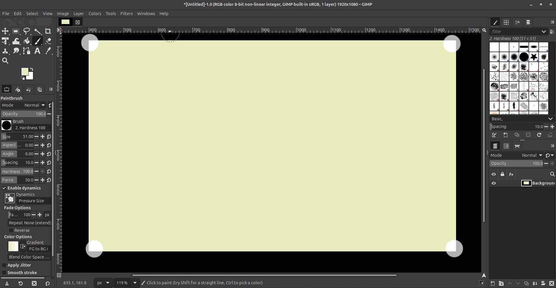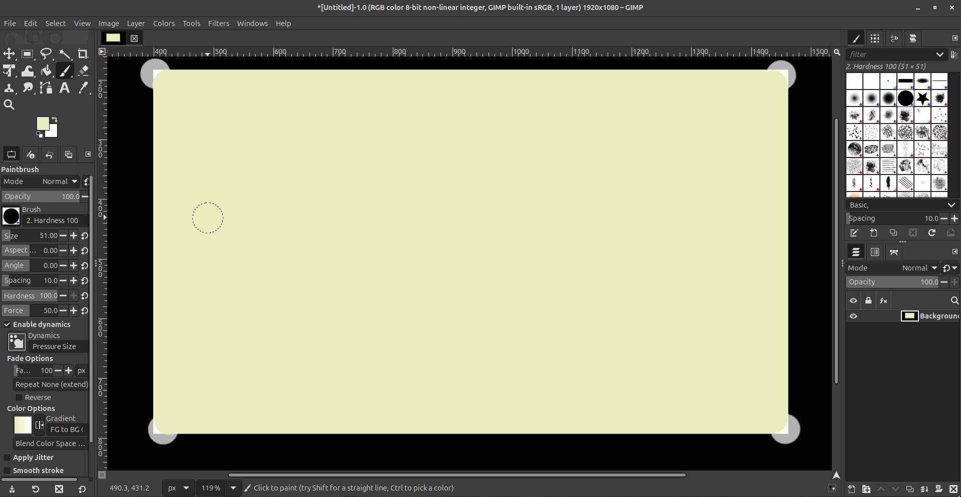 As an ubuntu user I already had some prior experience in GIMP since it is a great tool to write using a “free-form” way on linux devices. Despite this it was my first time creating any formal images designs in GIMP so it was interesting explroing the interface. This ws what I was met by first a blank white screen ready to be customized