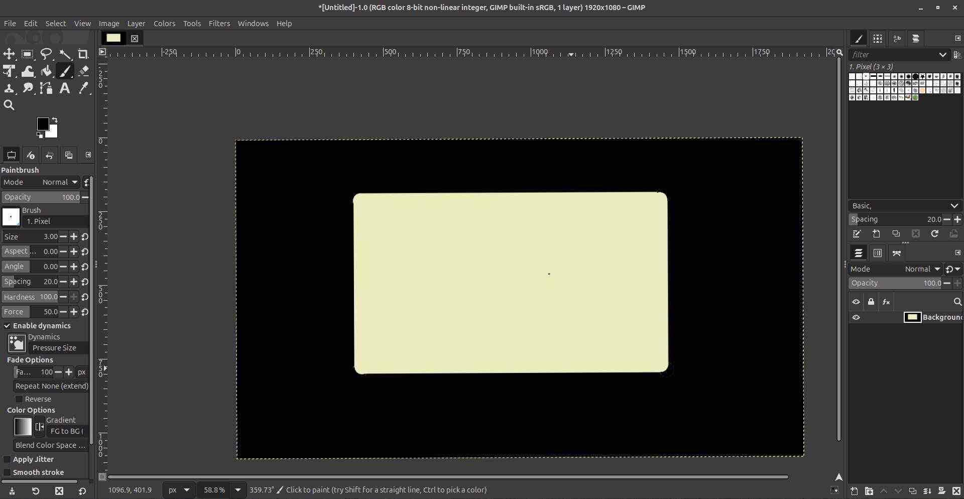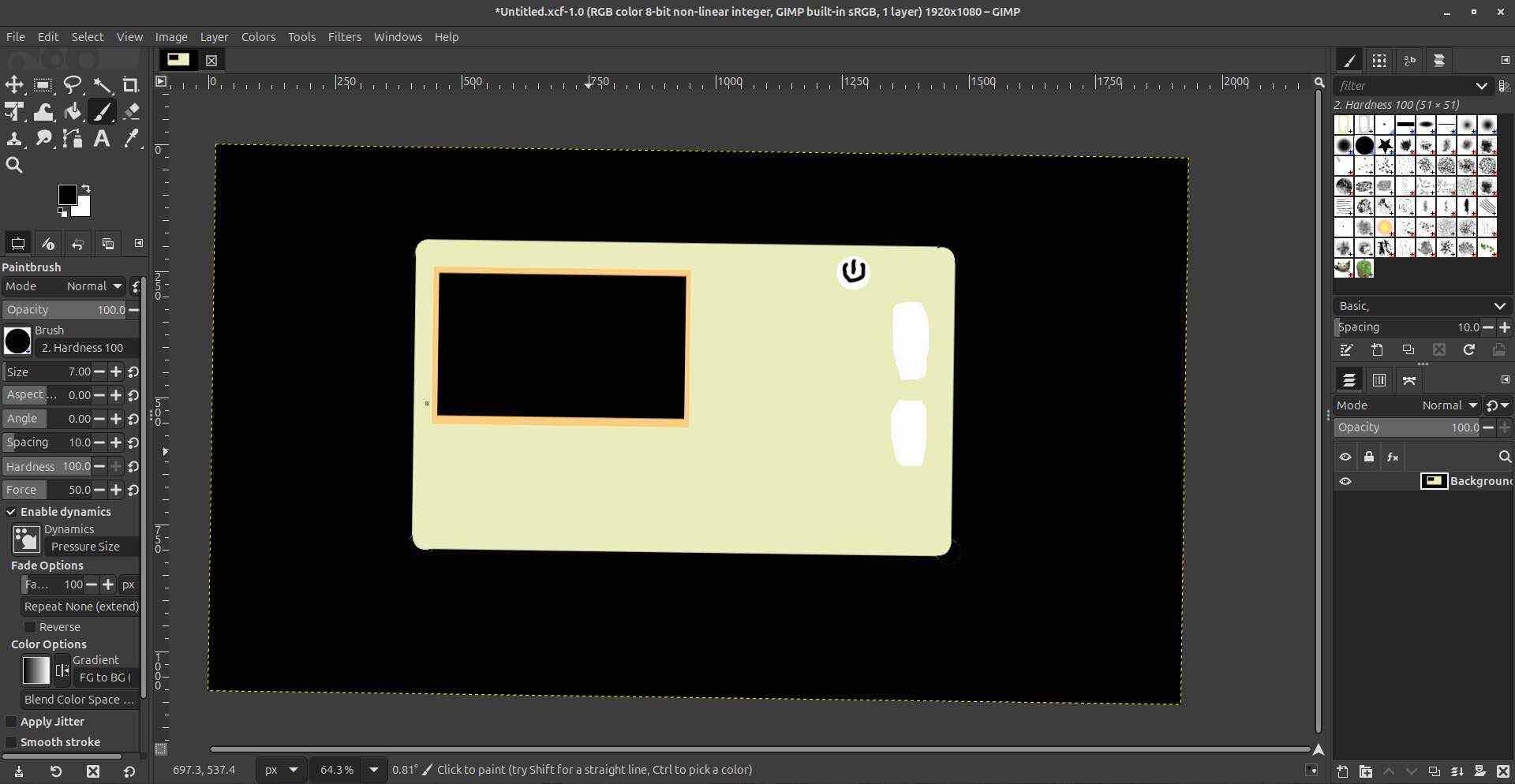 Raster is pixel-based, so it’s good for free-form drawing and anything that feels like painting or photo editing—brushes, gradients, photo retouch. The tradeoff is that clean fillets and cutouts aren’t built-in. To get rounded corners I had to delete the sharp corners on the fill, then use the pen tool to reconnect the edges and fill the gaps with black again. It works, but it’s manual and easy to get slightly wrong. Scaling up or down always risks blur or jaggedness because you’re resampling pixels. For anything that might get resized, sent to a laser cutter, or used as a technical drawing, vector tends to be the better bet. GIMP is still the right tool when the goal is “draw something that looks good” rather than “define precise, scalable geometry.”