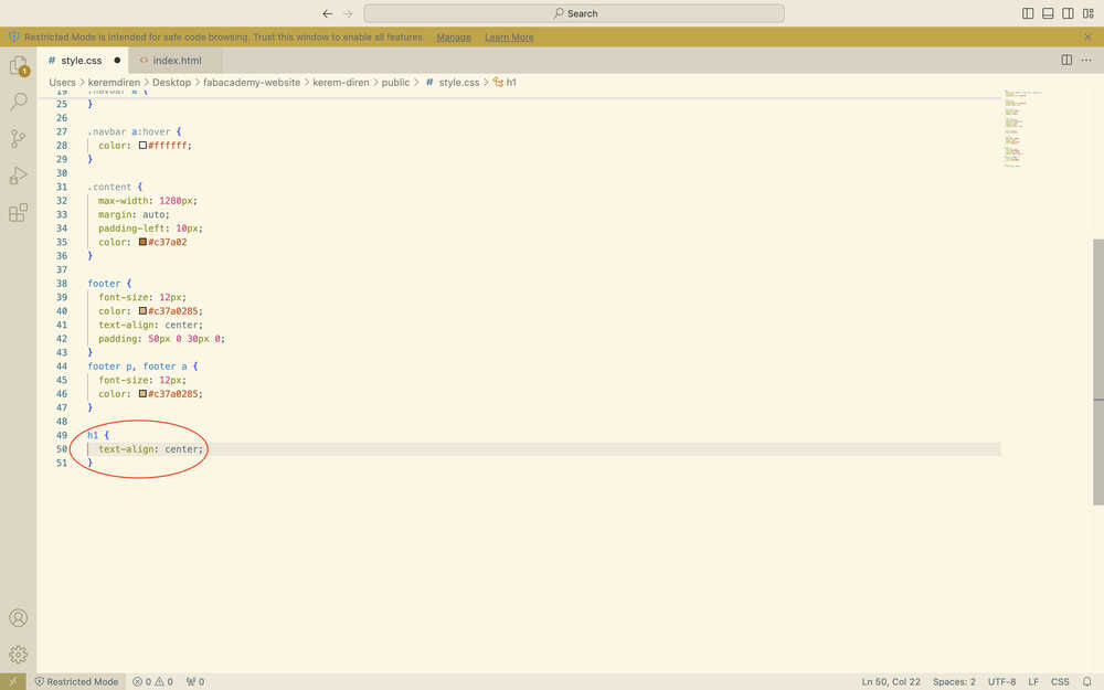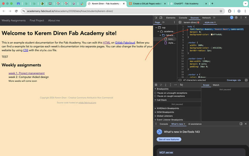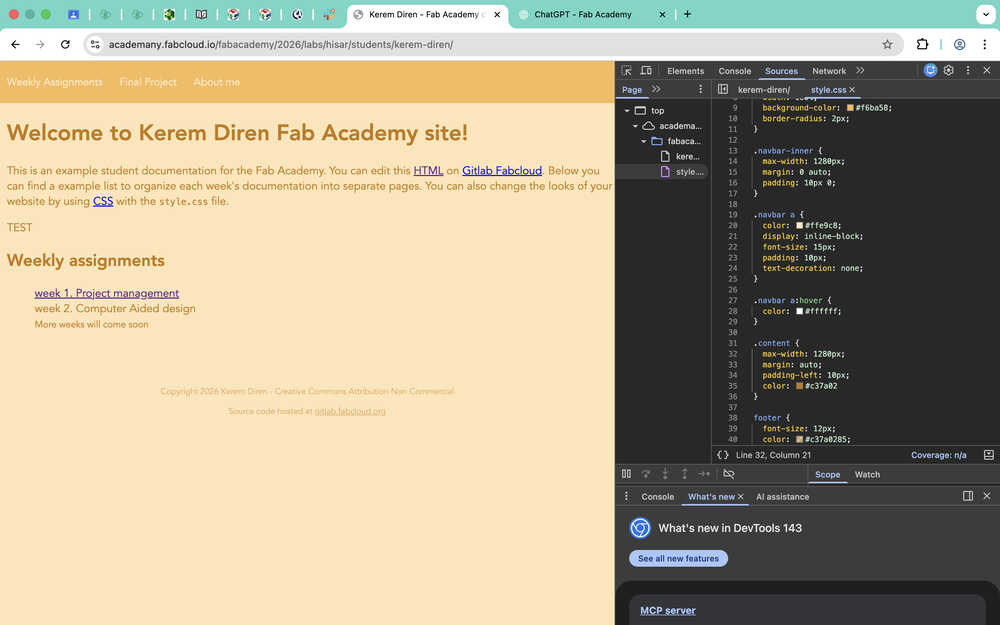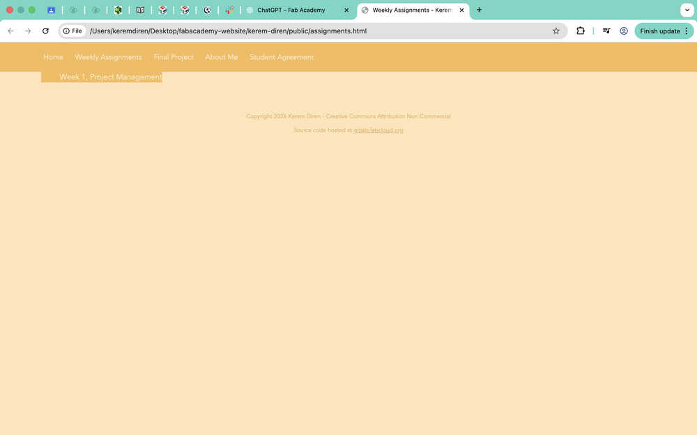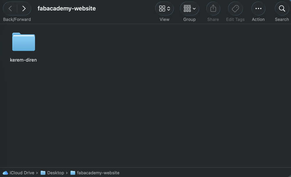 I wrote cd desktop/fabacademy-website into terminal to get to choose my target file.