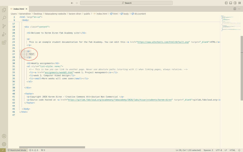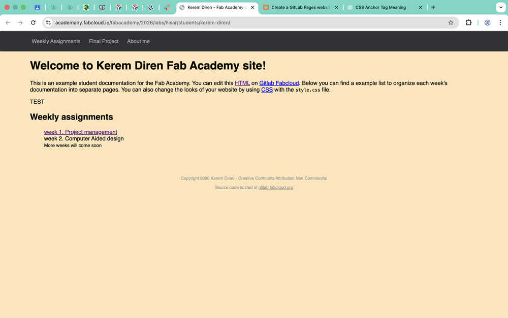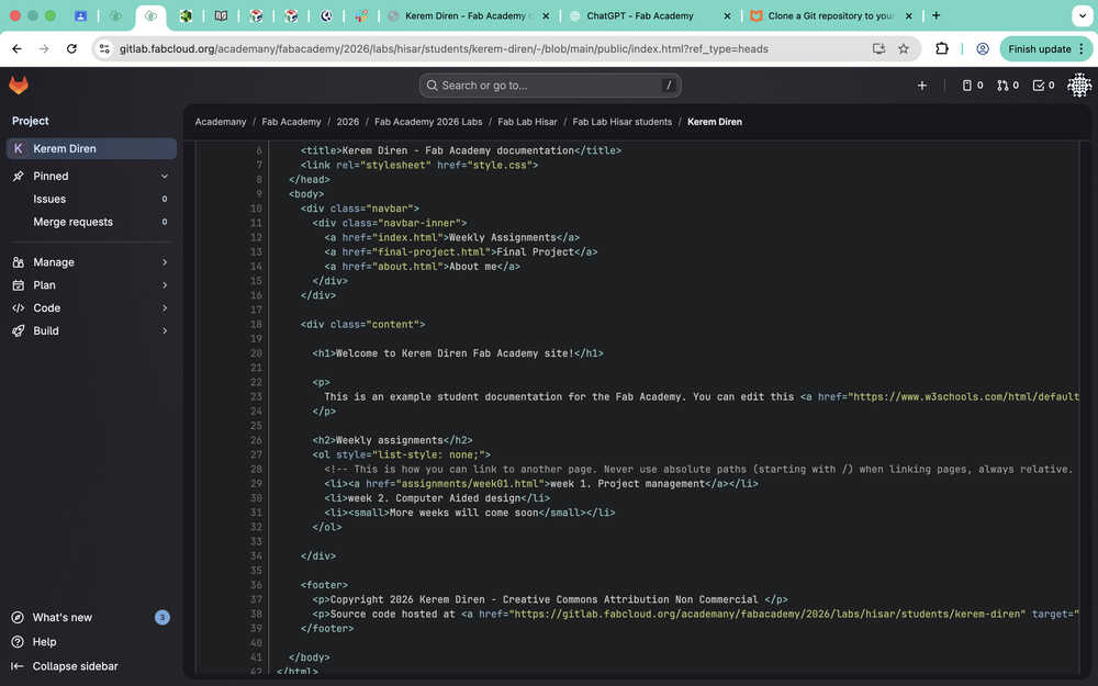 I first opened the website I gave in the resources section about websites and started reading the information written in it. After some time looking through the website and going back and forth from my GitLab repository, I realized that my website was already deployed. I tested this by changing something in the "index.html" file.