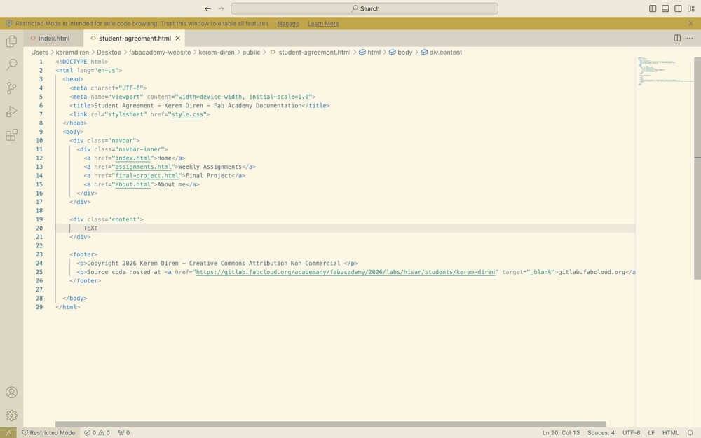 I created a file named "student-agreement.html".