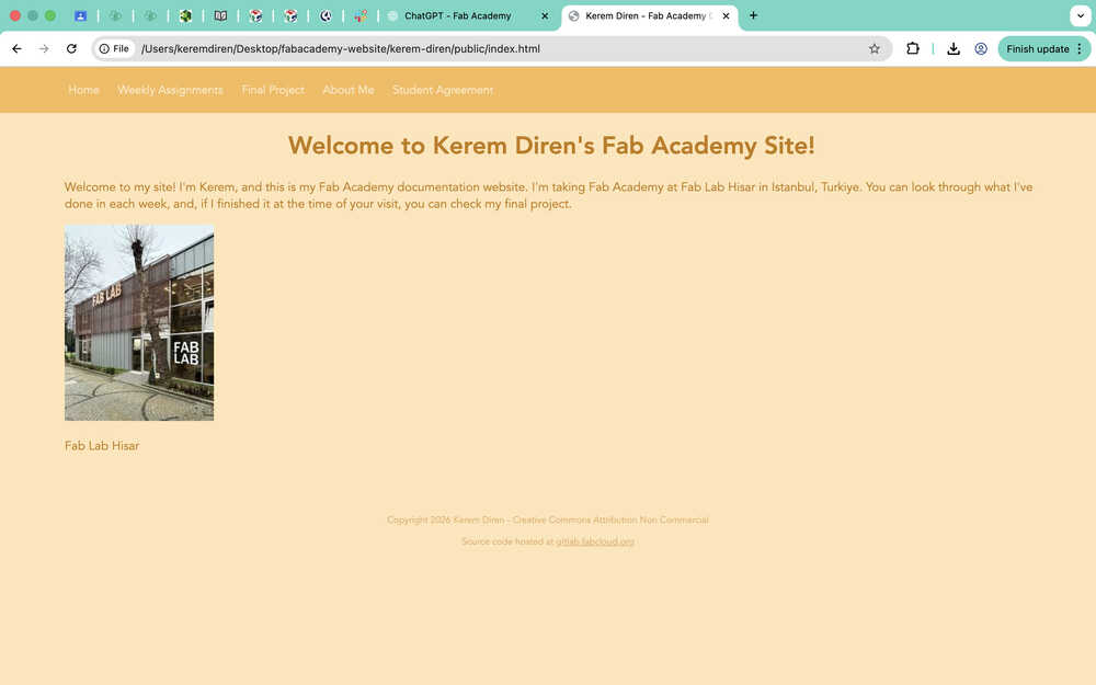 I wrote some text for my home page and added the photo of the Fab Lab I will be using through Fab Academy.