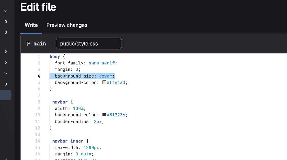 I decided to change the background to cream color. I asked ChatGPT for the code of the color. After some testing, I decided to settle for "#ffe1ad".