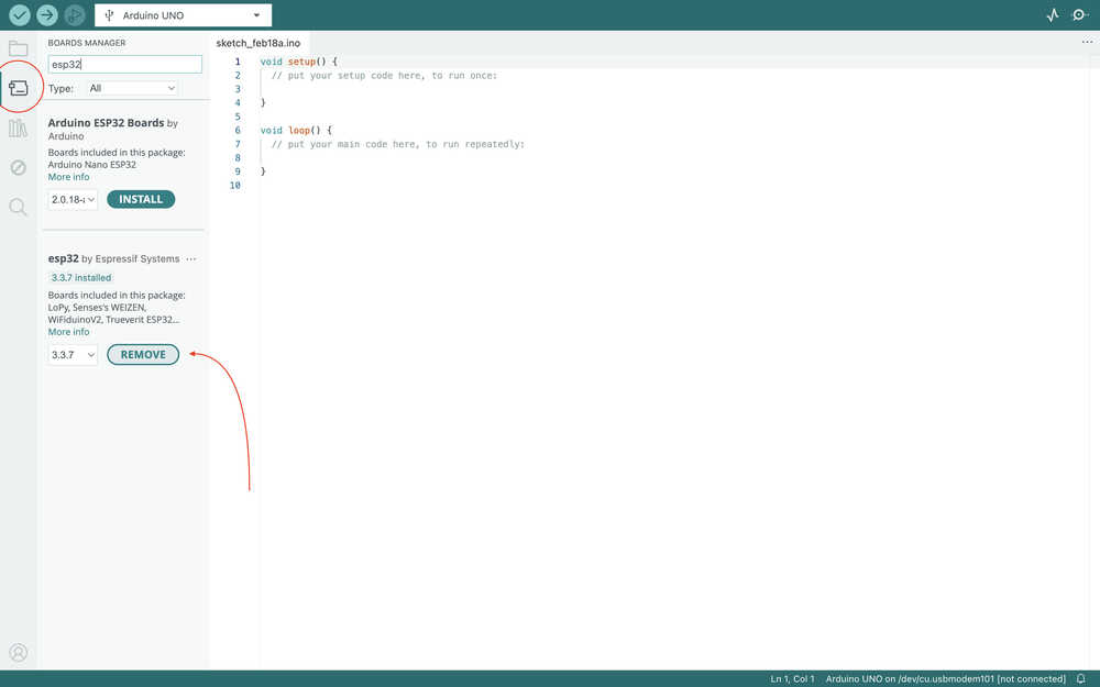 Navigate to the boards manager tab and download esp32 by Espressif Systems.