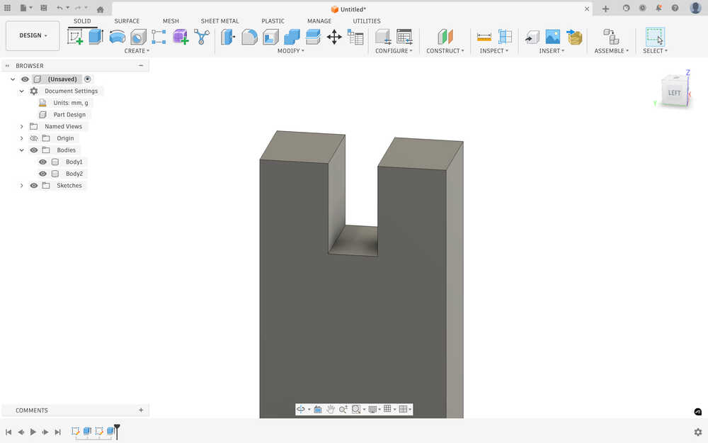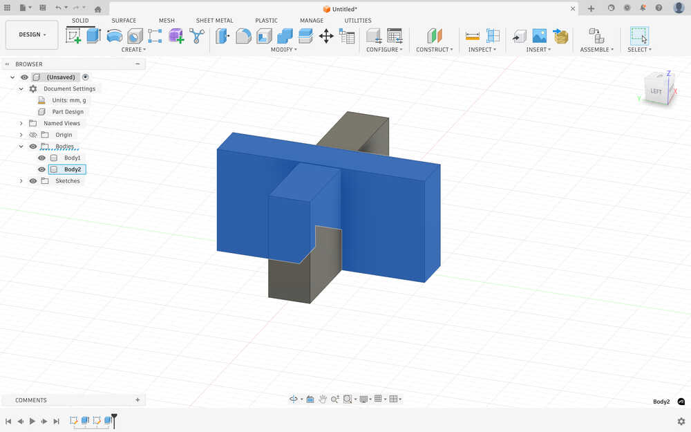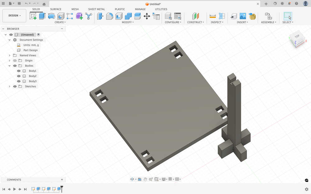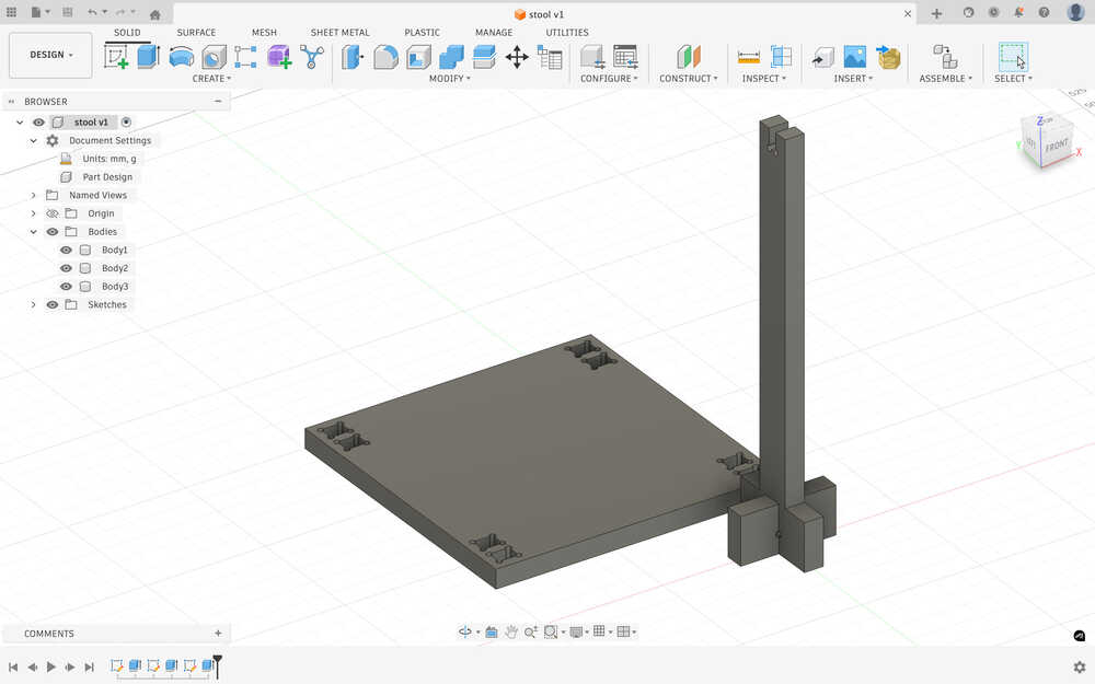 I went back to the design of the second body and added a 350mm by 40 mm rectangle to increase the height of the stool.