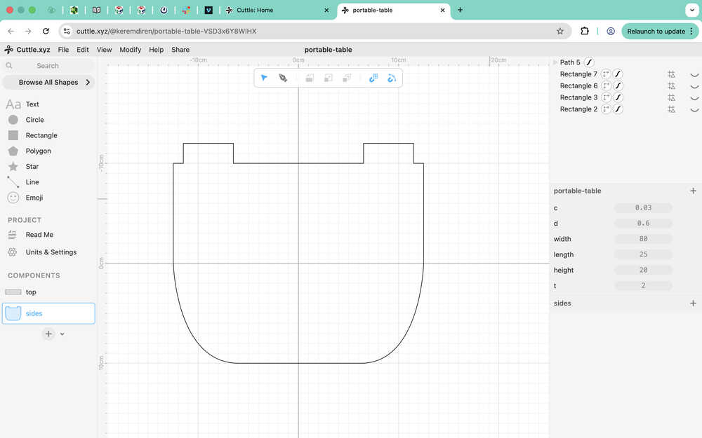 I want to design something that can hold my computer, some plates etc. while I'm in bed, on my couch etc. Kind of like a portable table. I'll use Cuttle for this design.