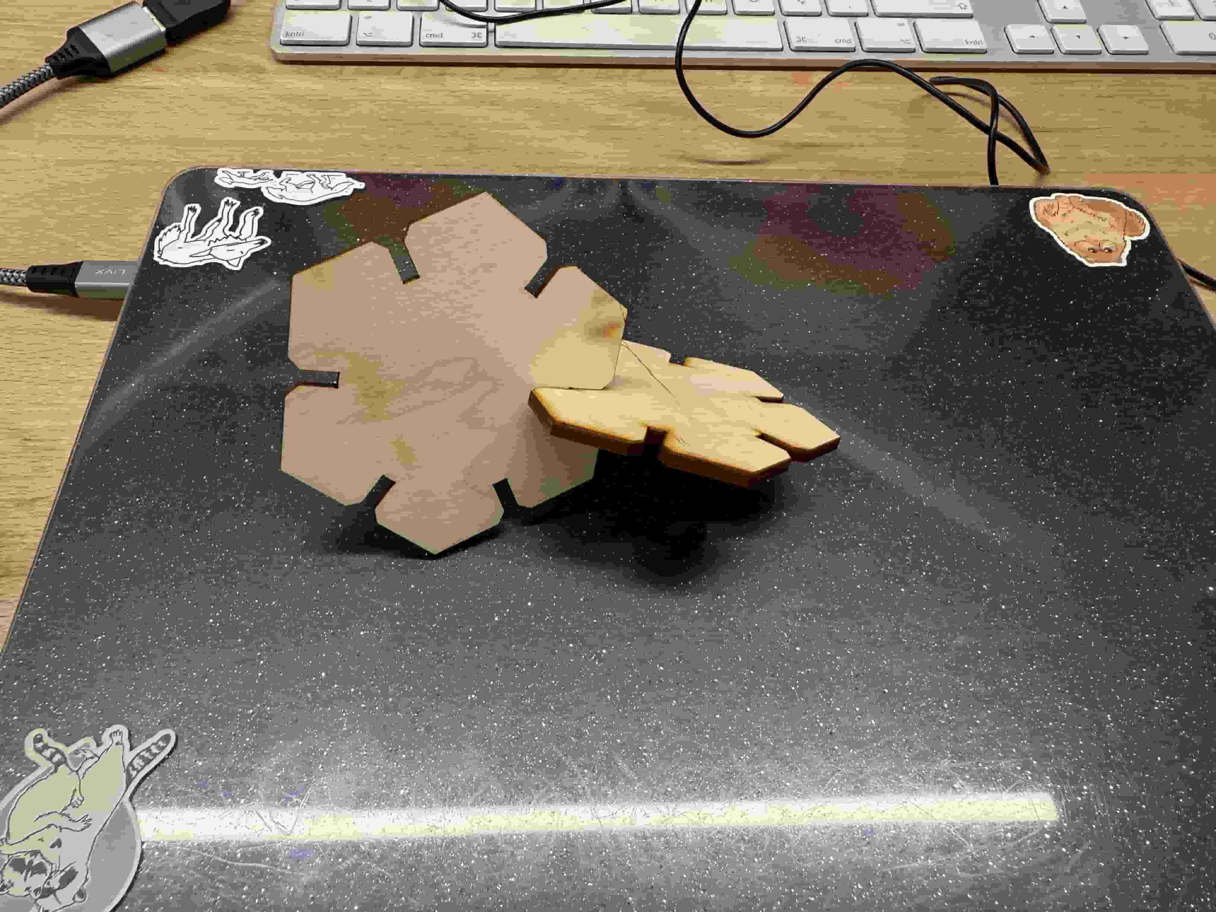 I first wanted to try if my construction kit was gonna work. With hexagon_side being 50mm. I followed the same steps to cut with xTool P3 using the same settings.