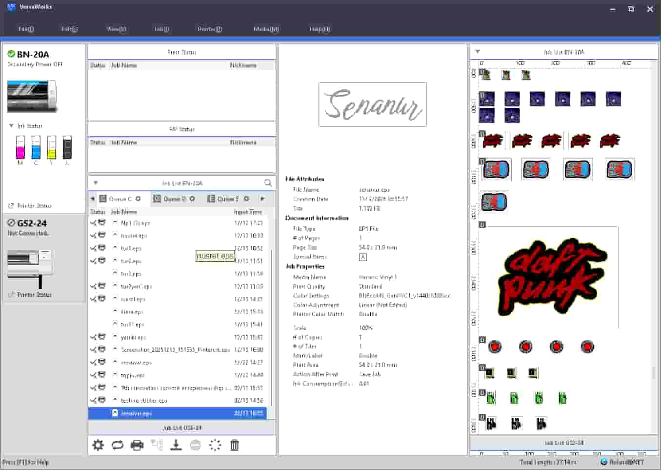 I dragged the file onto VersaWorks. After doing the necessary adjustments like size and placement, I started the print.