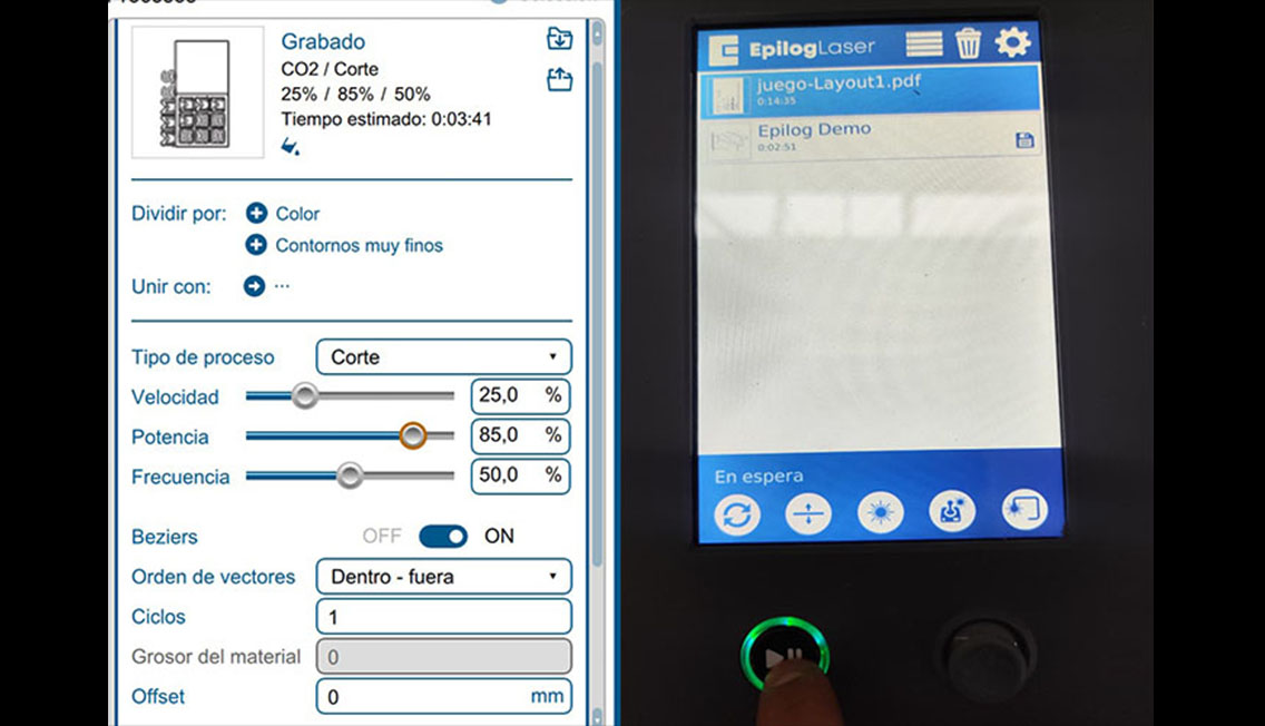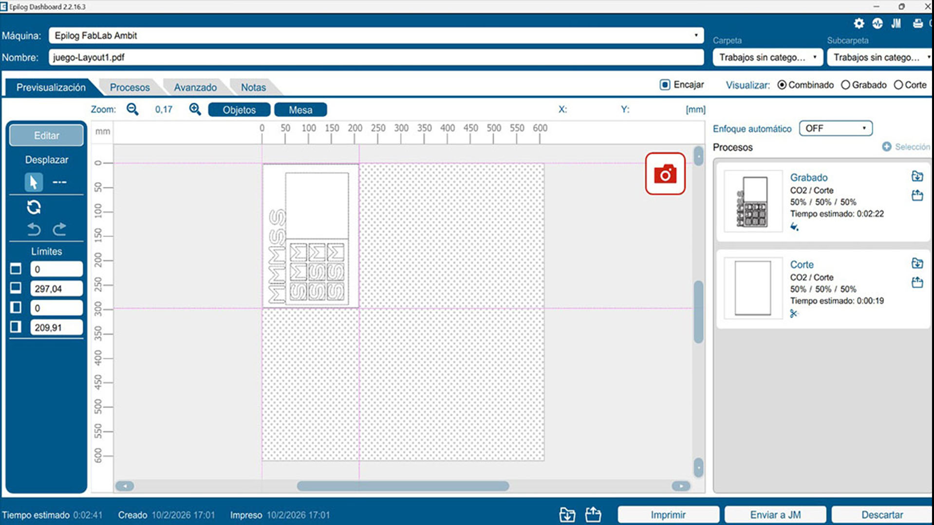 For the material, I chose to work with recycled corrugated cardboard, aligning with the sustainable spirit of the project. I configured the laser for a vector-only cut—skipping engraving to keep the design clean and bold—using settings of 80% Power, 25% Speed, and 50% Frequency. However, the beauty of recycled material comes with its own set of challenges; due to the inconsistent density of the salvaged sheets, the laser didn't always penetrate the core perfectly. This required a patient, hands-on approach to manually separate the pieces from the center of the board, a reminder that digital precision must always account for the "imperfections" of real-world materials. Finally, after a quick assembly using glue to reinforce the structure, the game was ready. Seeing the children immediately claim the "M" and "S" pieces and start their match was the ultimate validation. It wasn't just a technical success; it was a functional piece of microarchitecture that facilitated an instant, joyful connection between two players