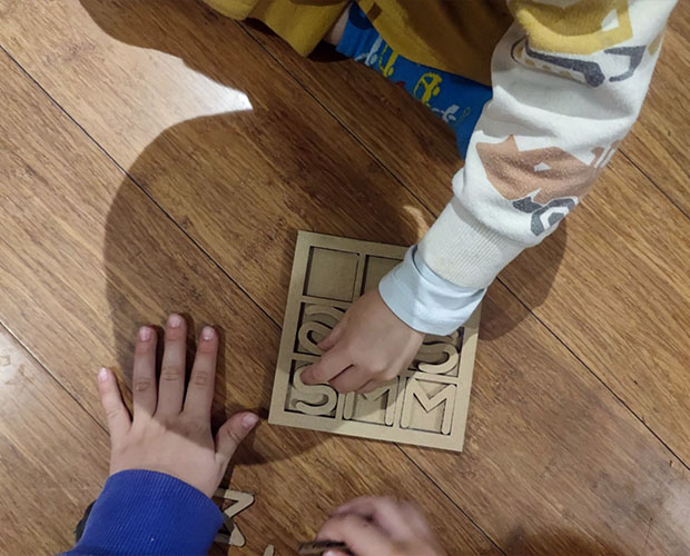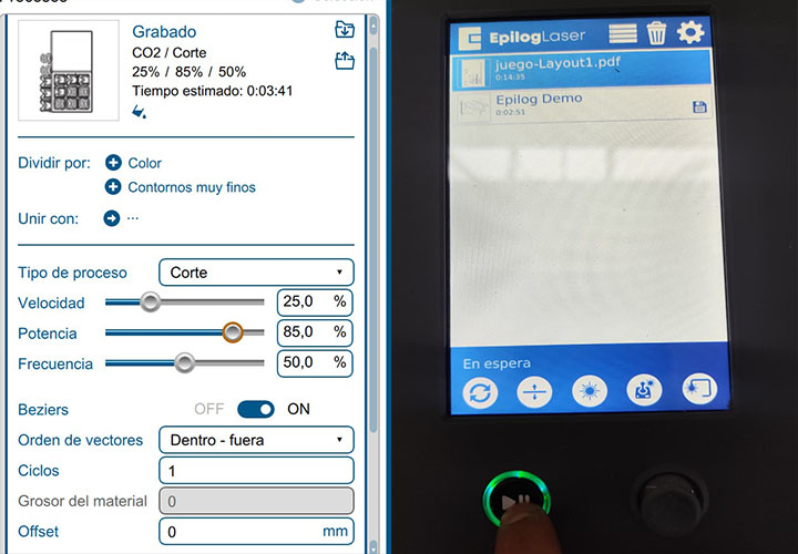 For the material, I chose to work with recycled corrugated cardboard, aligning with the sustainable spirit of the project. I configured the laser for a vector-only cut—skipping engraving to keep the design clean and bold—using settings of 80% Power, 25% Speed, and 50% Frequency. However, the beauty of recycled material comes with its own set of challenges; due to the inconsistent density of the salvaged sheets, the laser didn't always penetrate the core perfectly. This required a patient, hands-on approach to manually separate the pieces from the center of the board, a reminder that digital precision must always account for the "imperfections" of real-world materials. Finally, after a quick assembly using glue to reinforce the structure, the game was ready. Seeing the children immediately claim the "M" and "S" pieces and start their match was the ultimate validation. It wasn't just a technical success; it was a functional piece of microarchitecture that facilitated an instant, joyful connection between two players
