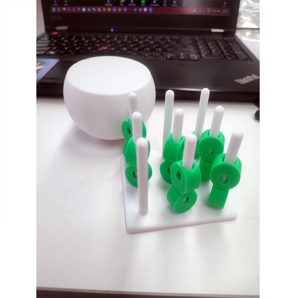 Additionally, driven by further interest in experimentation and validation of the printing process, we proceeded to fabricate an additional model based on a three-in-a-row game logic adapted to a three-dimensional configuration. This secondary model was obtained from an online open-source repository and was not developed as part of our original parametric design workflow.