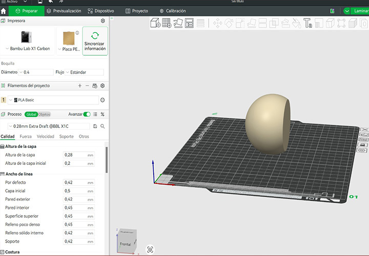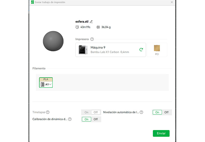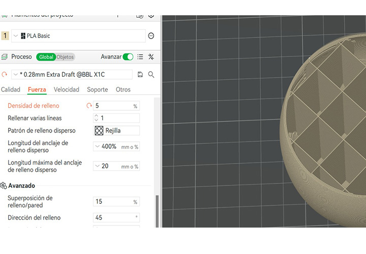 Once the digital model was completed, we exported the file and prepared it for fabrication. We opened the file in Bambu Studio to configure the printing parameters. The design was positioned on the print bed in a way that minimized the need for supports, optimizing both material use and print quality.